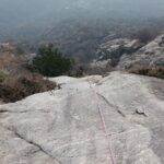 1° tiro: salire per 10 m delle placche lichenate, ma gradinate 4b, 1 chiodo.