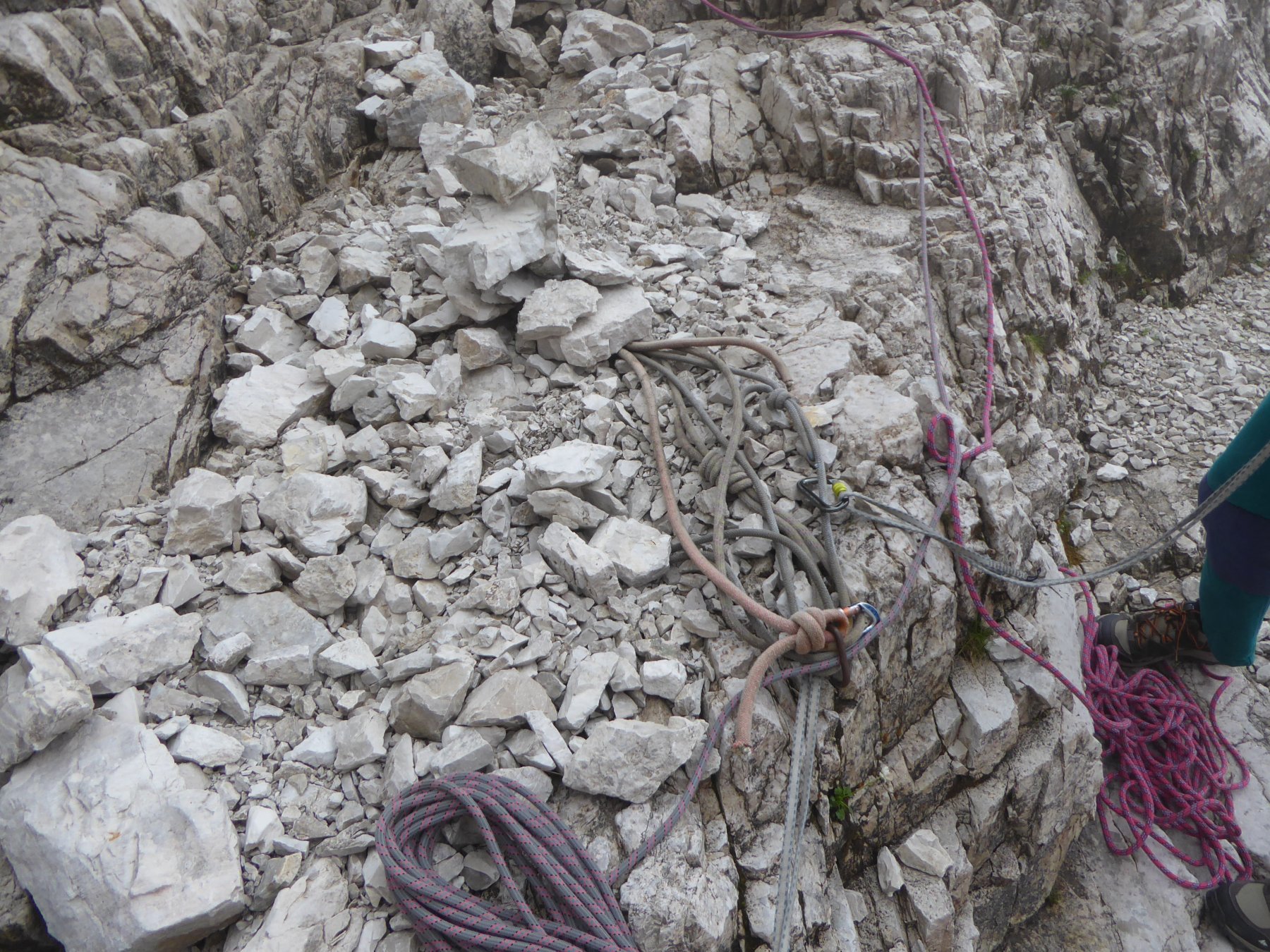 Discesa non banale con il canale innevato. Informarsi bene al rifugio. Portare qualche chiodo per emergenza.