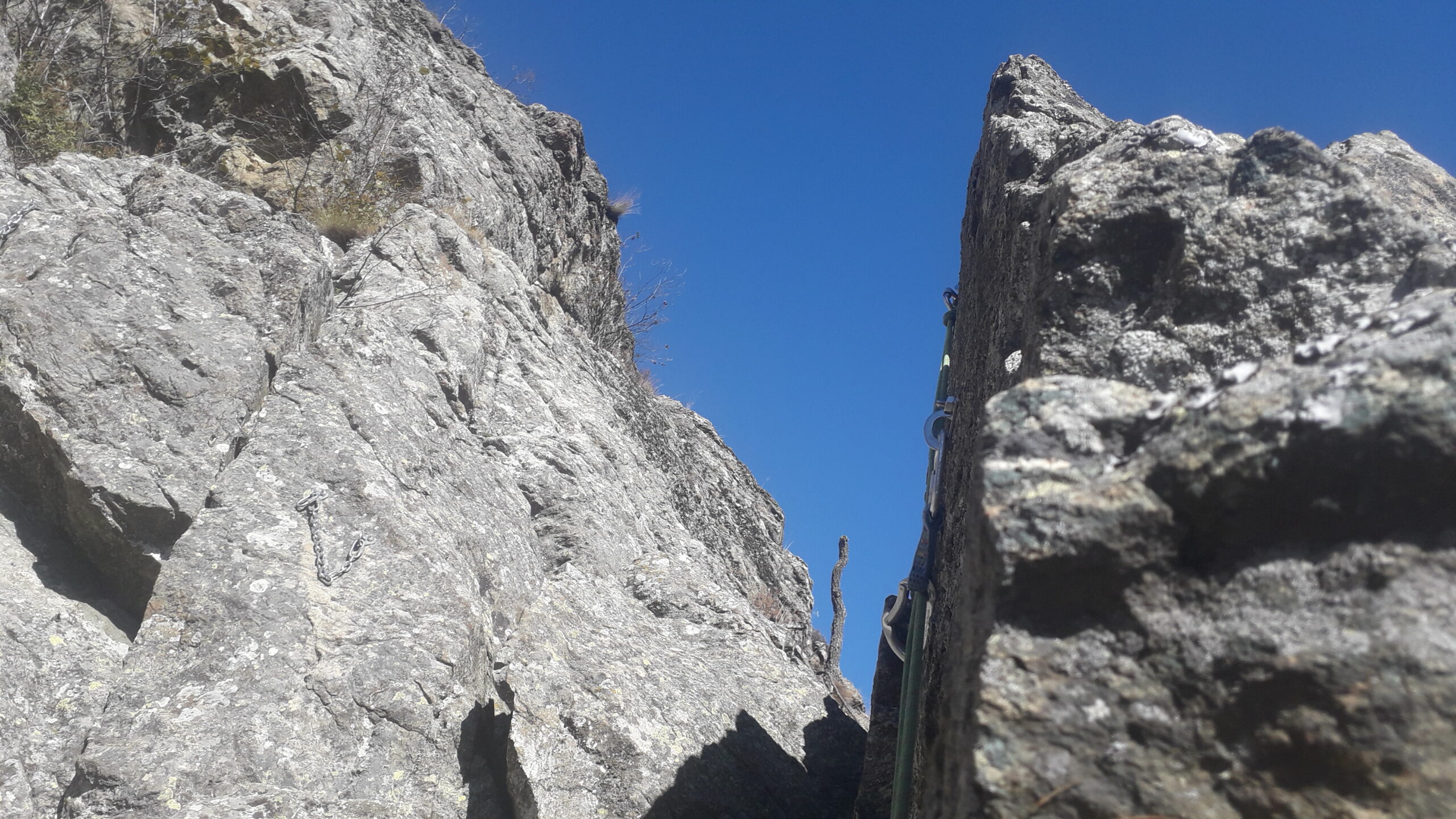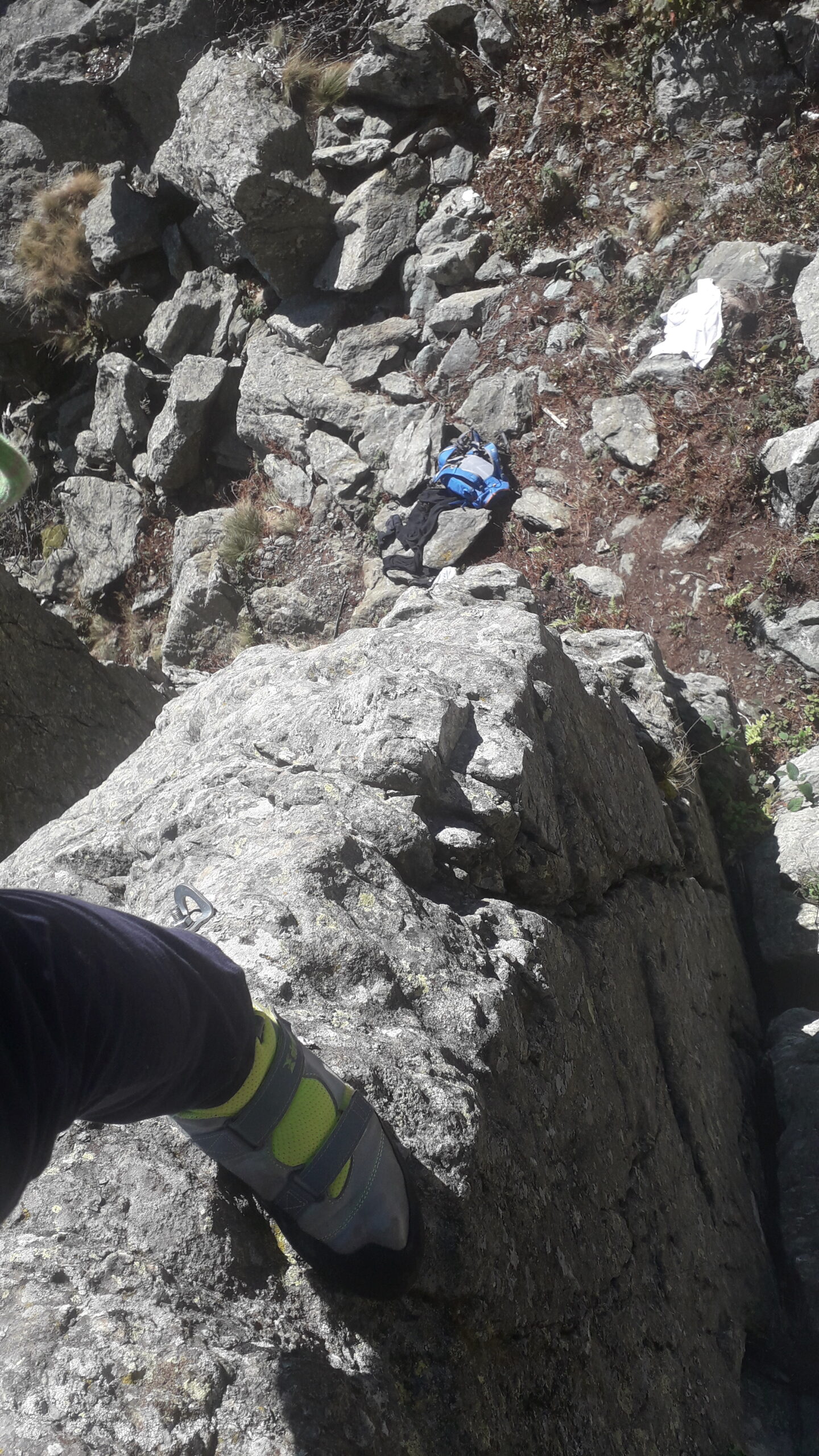 A sx della via Lunga descritta nel precedente post pertinente a quella via, salgo l’altrettanto breve monotiro, non piu’ di una 15ina di mt. , targato Rampiu da ciuc, la cui relativa facilita’ mi ha suggerito il salirlo in slego.