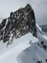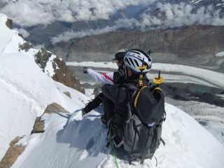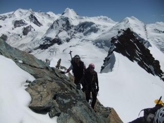 Saliti da Cervinia con la prima funivia, ghiacciaio in perfette condizioni, saliti prima alla Roccia nera e poi in traversata fino al Breithorn orientale effettuando due calate da trenta metri ( soste su cordini in loco ). Traversata in ottime condizioni, tutta ben tracciata. Un saluto ai nostri due compagni di gita Gianluca e Franco