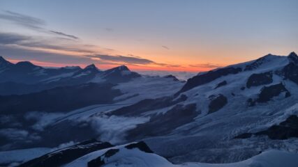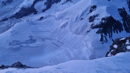 Siamo saliti ieri pomeriggio sul tardi (21/7) con l’ultima funivia e abbiamo fatto il tratto da plateau rosa al bivacco rossi e volante. Ci sono già tanti crepi aperti e ponti instabili (per lo meno a quell’ora), da fare attenzione.
