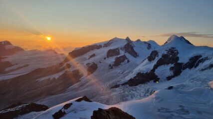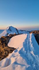 Partiti stamattina per la traversata. Condizioni ottime, ottimo rigelo notturno che ci ha permesso di salire rapidamente al roccia nera. E da lì percorrere tutta la cresta fino al centrale (abbiamo saltato l’occidentale, il meteo si era un po guastato e non avevamo voglia di perdere l’ultima funivia… che è alle 15:45, occhio!).