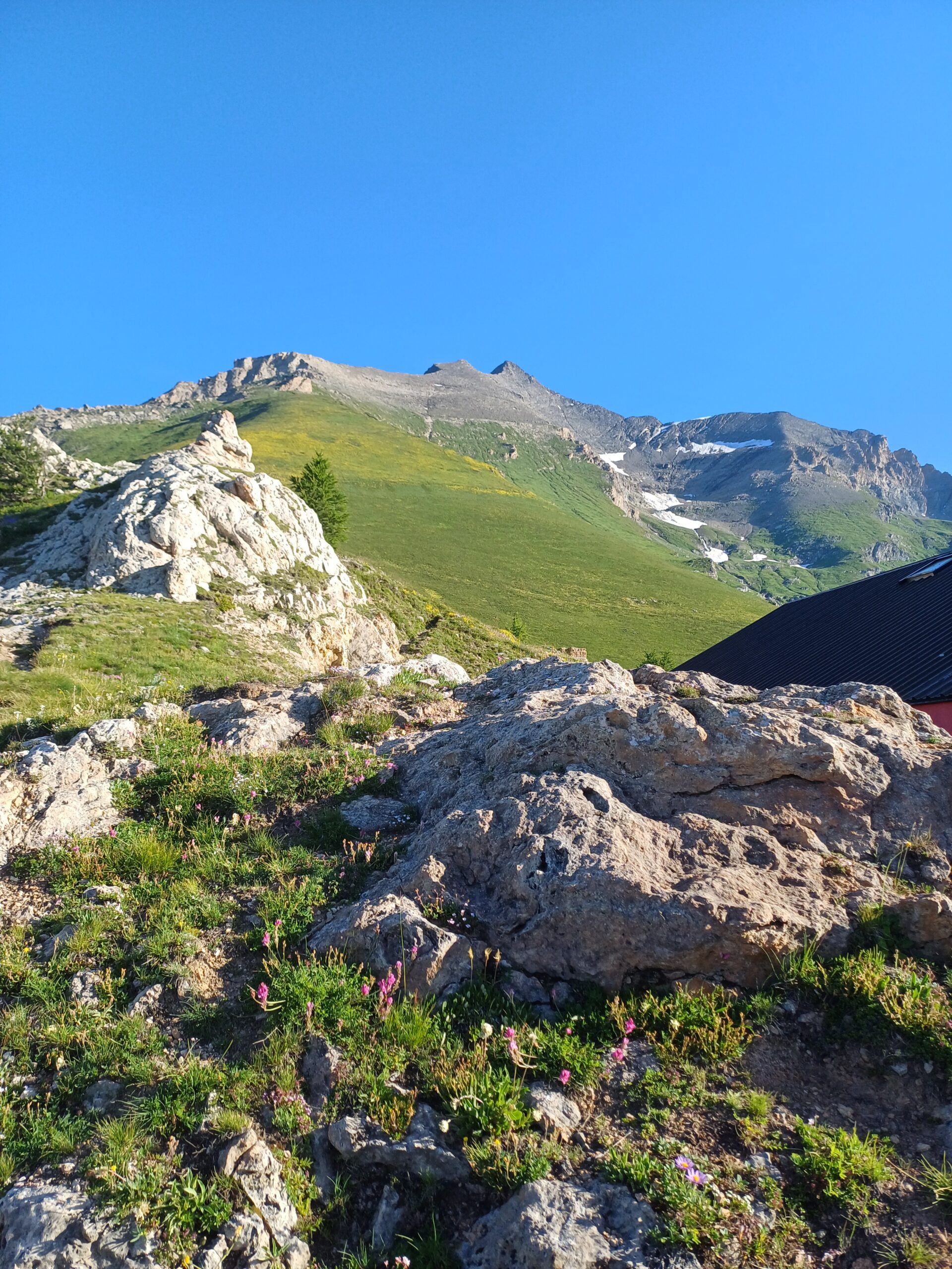 In discesa dalla croce di ferro non seguire il sentiero utilizzato in salita ma scendere a massima pendenza sul rifugio Ca Dasti per ghiaione.