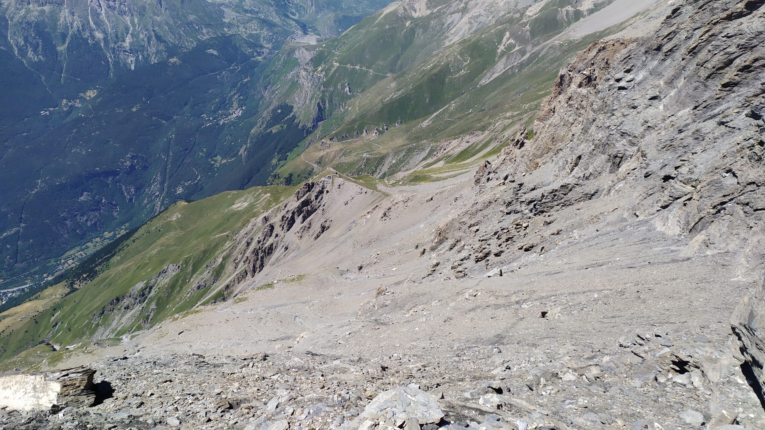 Dopo un primo tratto piuttosto ripido su un costone erboso, il sentiero taglia da sinistra verso destra, mirando ad un colletto (si passa sotto le infinite pietraie di Punta Marmottere).