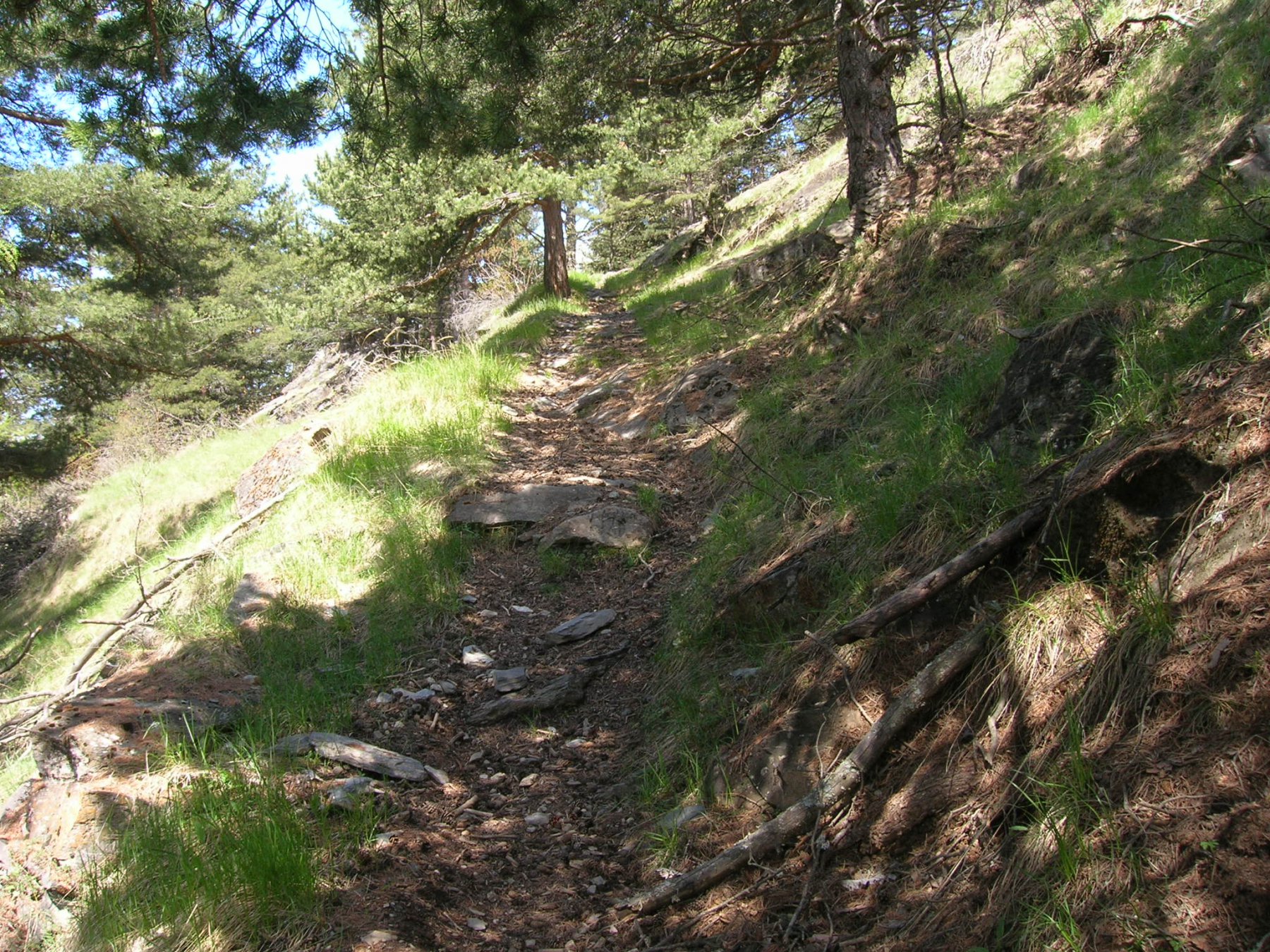 Inizialmente molto facile e gradevole, diventa verso la fine veramente impegnativo. Tenendo ai bivi la destra si rientra a Savoulx centro, tenendo la sinistra ai bivi si arriva vicino all’antico sentiero che portava alle cave di talco (decisamente più impegnativo.