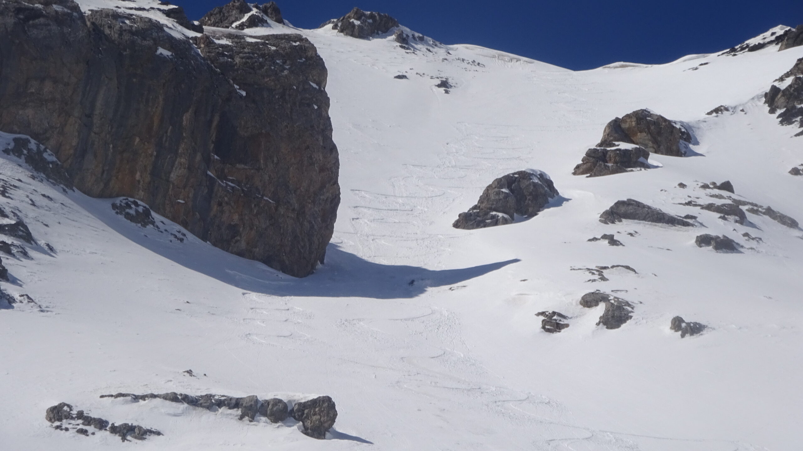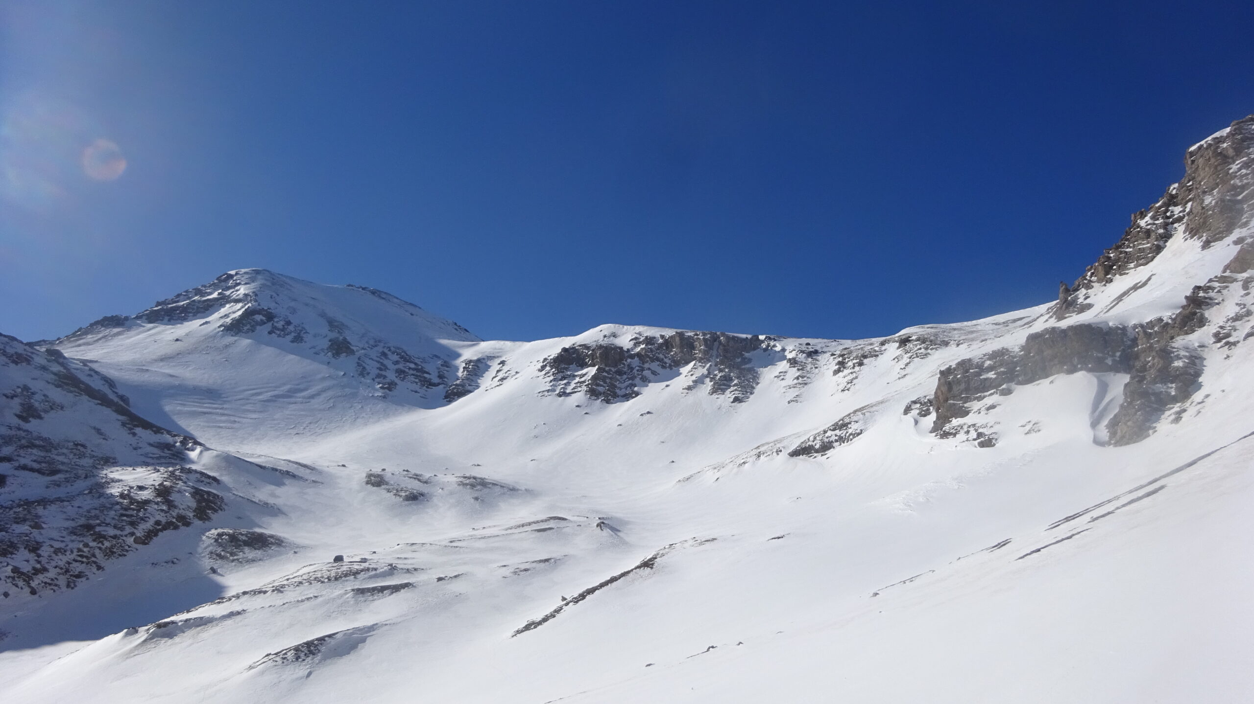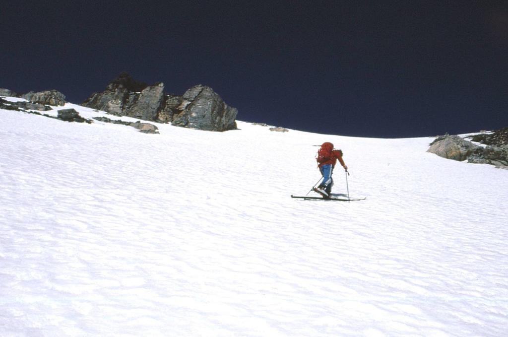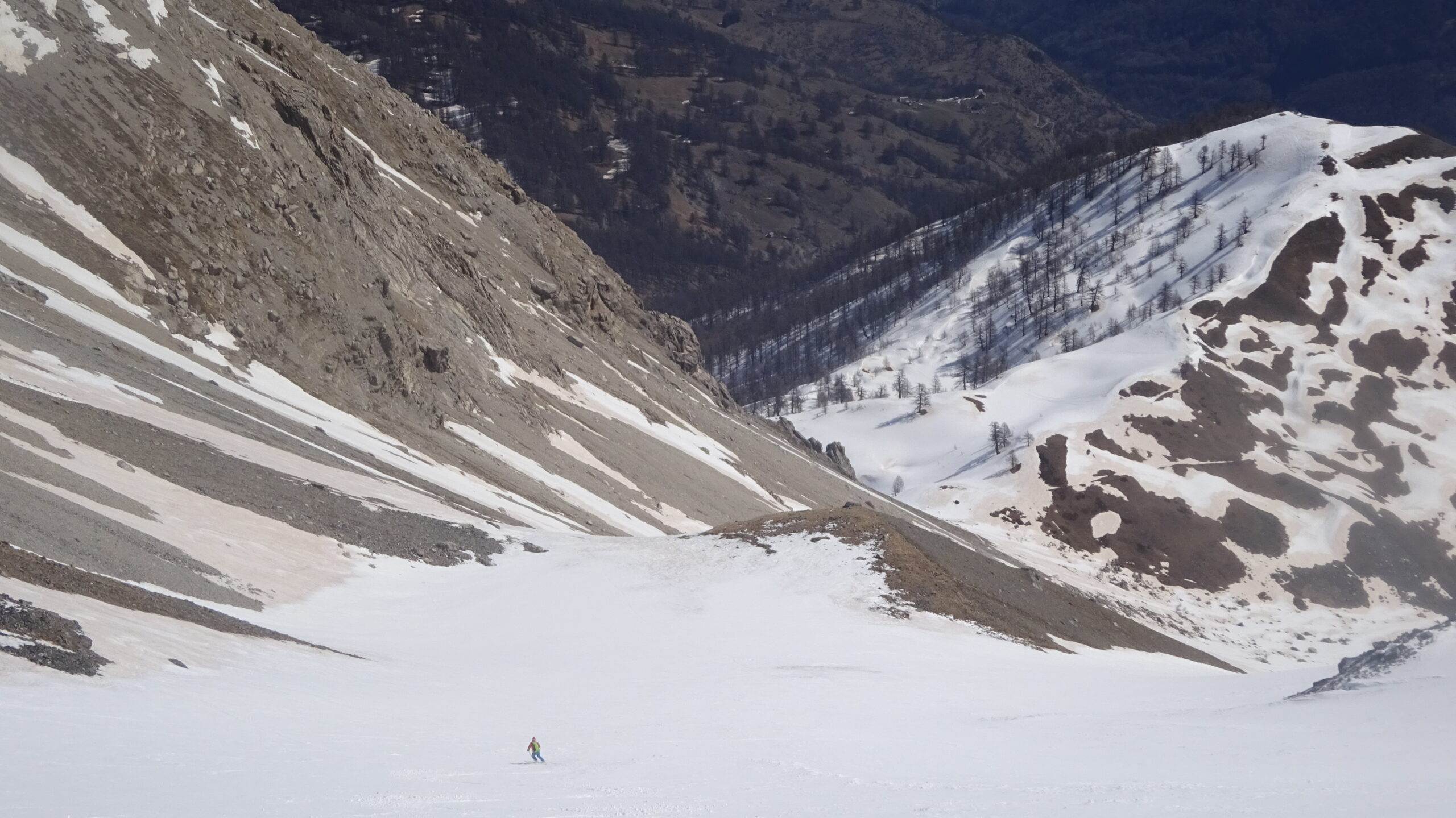 In genere gli sci si possono calzare a quota 1940 m., poco dopo l’incrocio con l’aspro valloncello di salita alla Chalance Ronde.