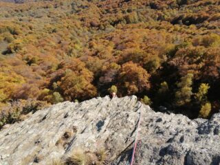 Tre tiri semplici, secondo tiro 5a+ verticale con ottime prese. Spit molto plasir tranne ultimo tiro che richiede un po’ di sangue freddo, comunque integrabile con friends.