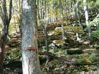 Nascosta nella faggeta si percorre sentiero stupendo ed ottimamente segnalato fino a giungere a questa rocca su pietraia con vista mozzafiato. Roccia con ottimo grip a volte un po’ sporca con attrezzatura più che ottima. Discesa a piedi per sentiero un po’ da cercare.