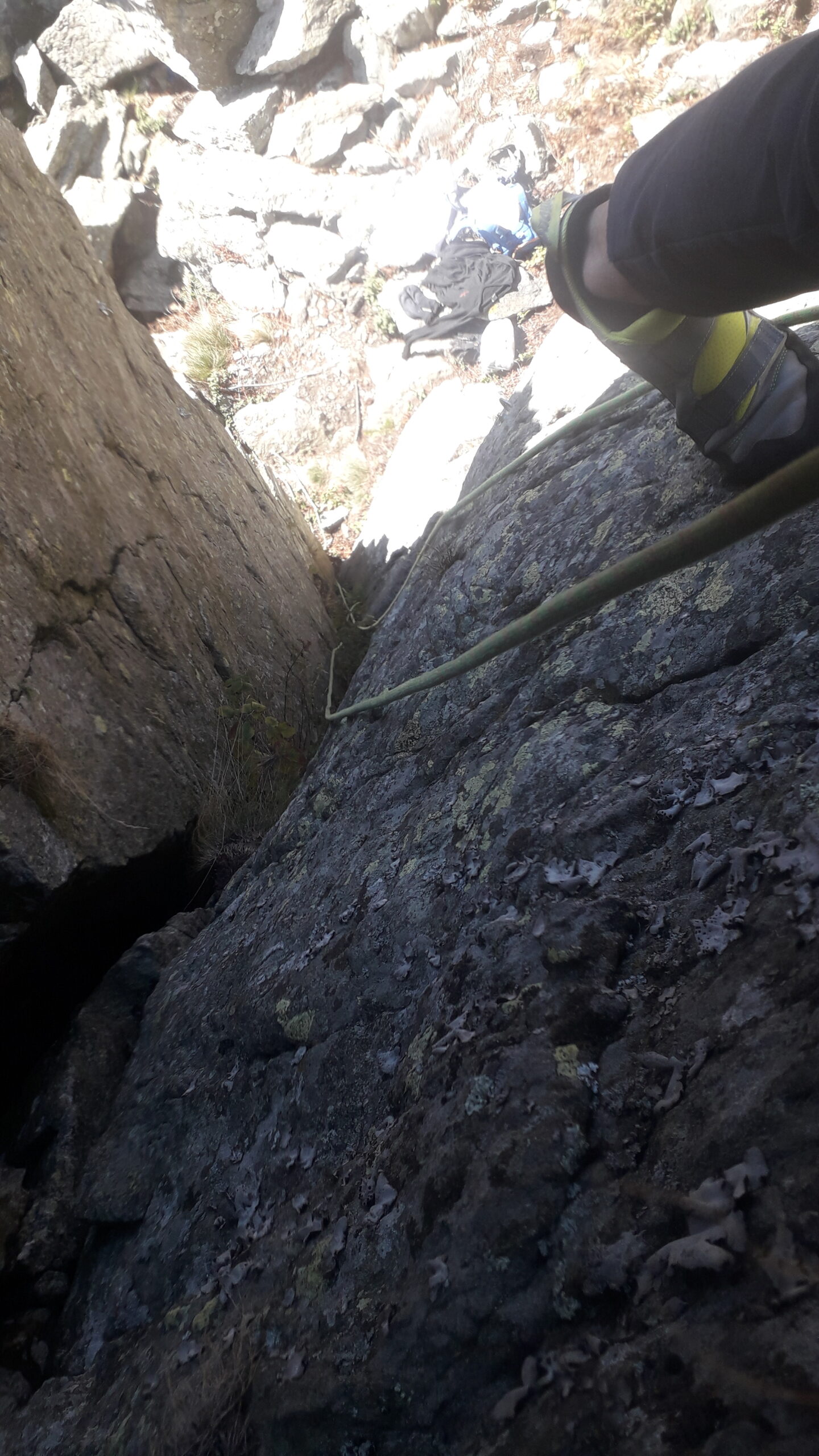 Sempre con sicura dall’alto..ovvero corda ben issata in sosta e bloccante ventrale al petto, anche dovesse scappare un piede o l’appiglio di mano, si rimane appesi e il divertimento cosi e’ comunque sempre assicurato.