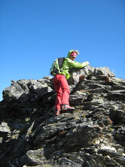 La cresta che porta dal colle alla cima è facile ma non banalissima…non c’è sentiero e quindi in alcuni tratti ci si deve arrangiare per trovare i passaggi più agevoli. Noi ci siamo tenuti un po’ più bassi sul versante Nord per poi risalire il pendio sotto la cima (20 minuti circa dal colle). Panorama interessante, giornata molto ventosa e anche parecchio fredda!!!