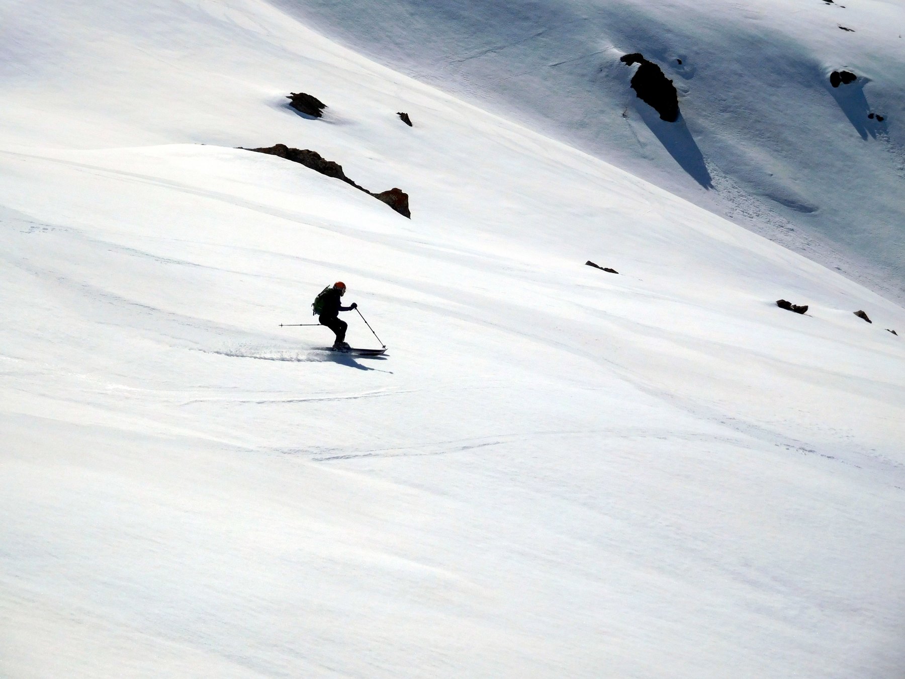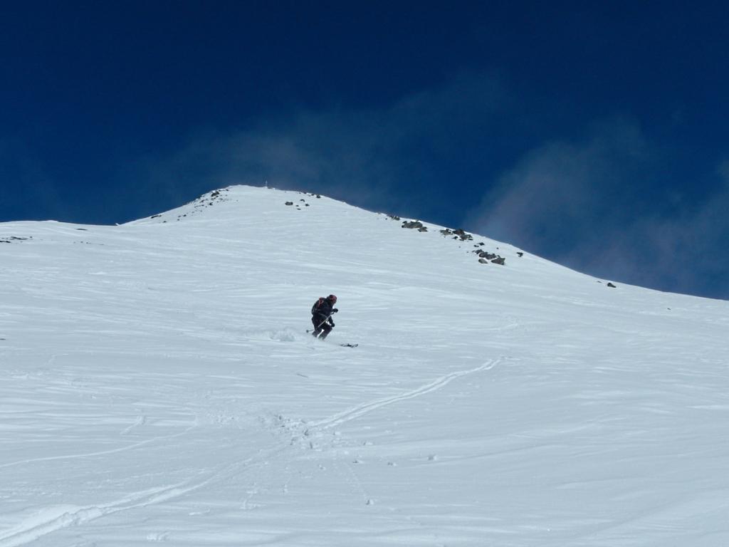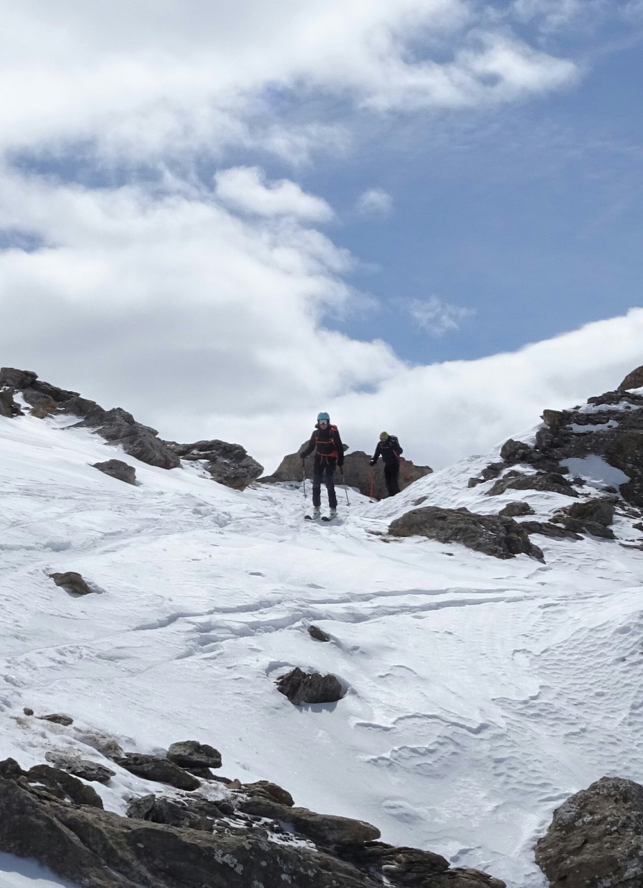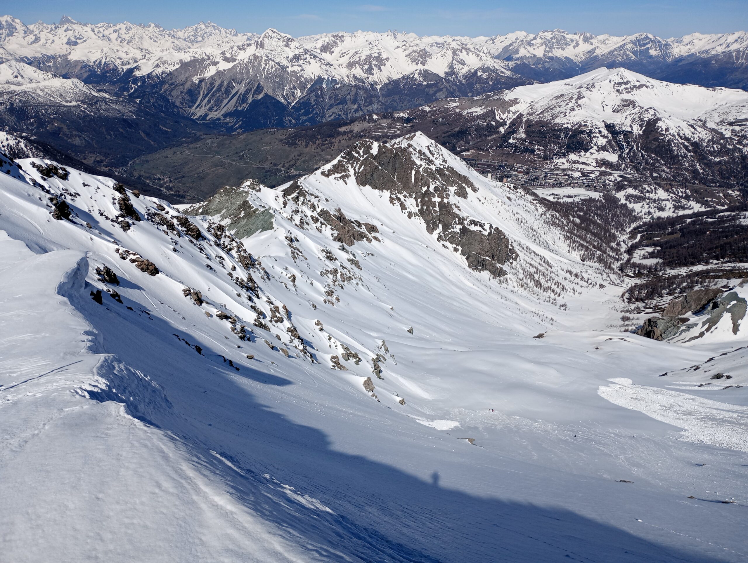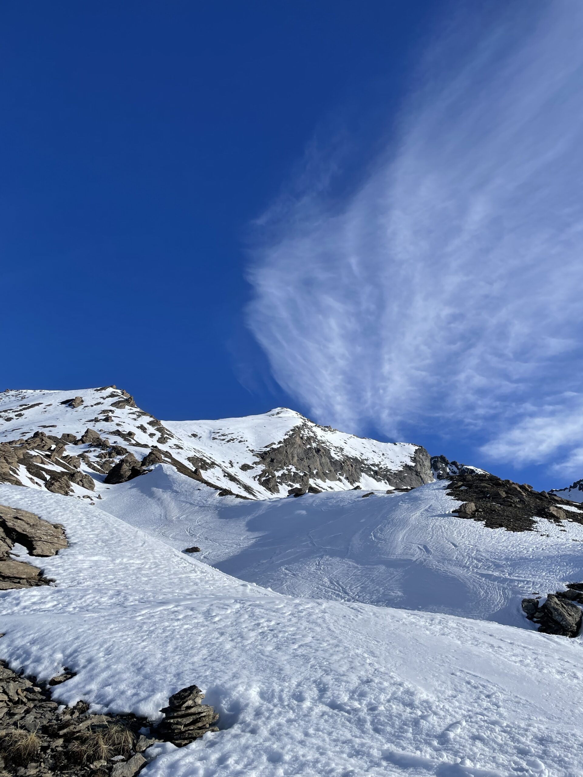 2. proseguire finchè la dorsale lo consente (fino a circa 2900 m) per poi con un breve traverso verso destra si recupera il centro del pendio-canale e quindi al Colle della Rognosa.