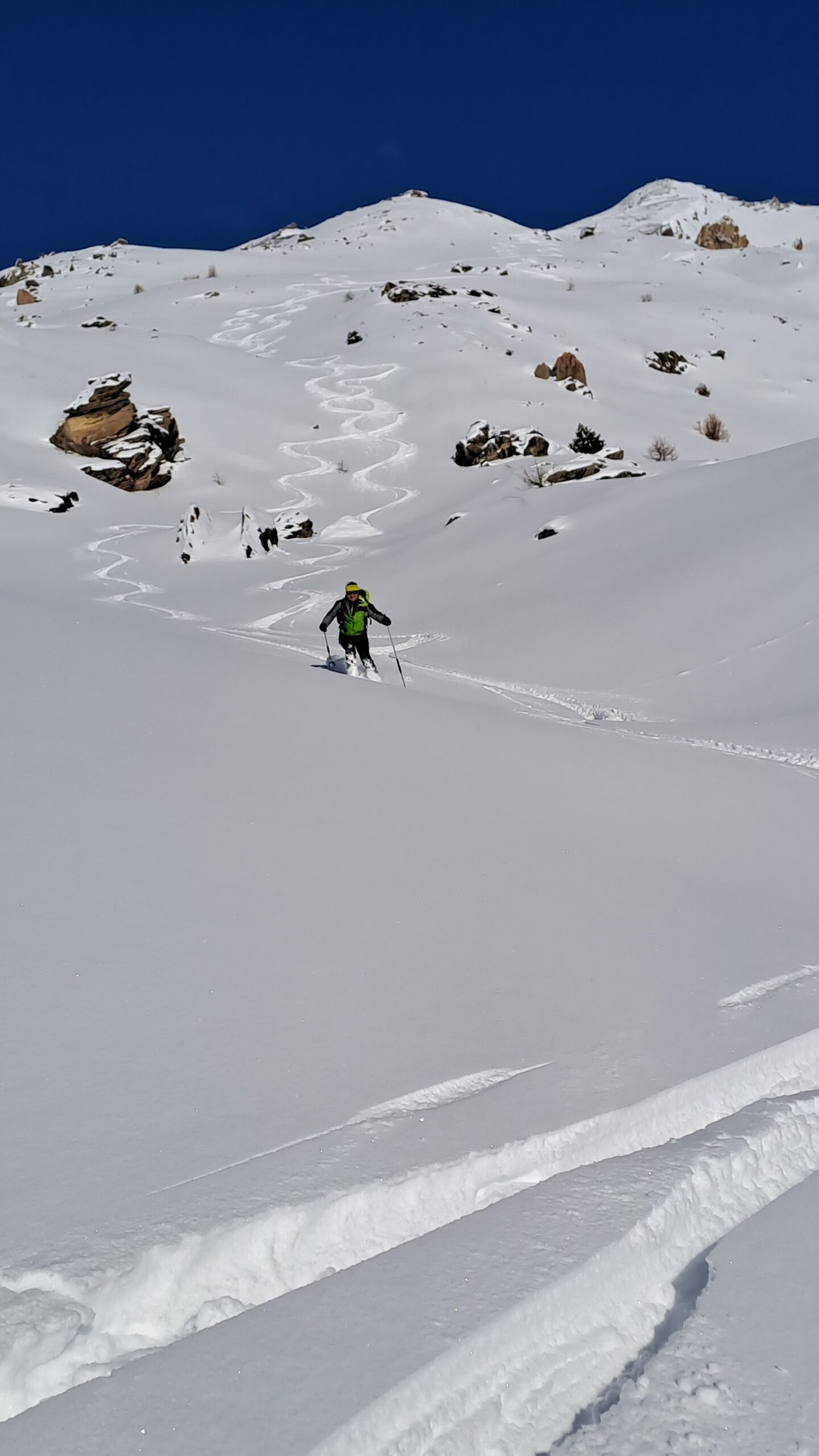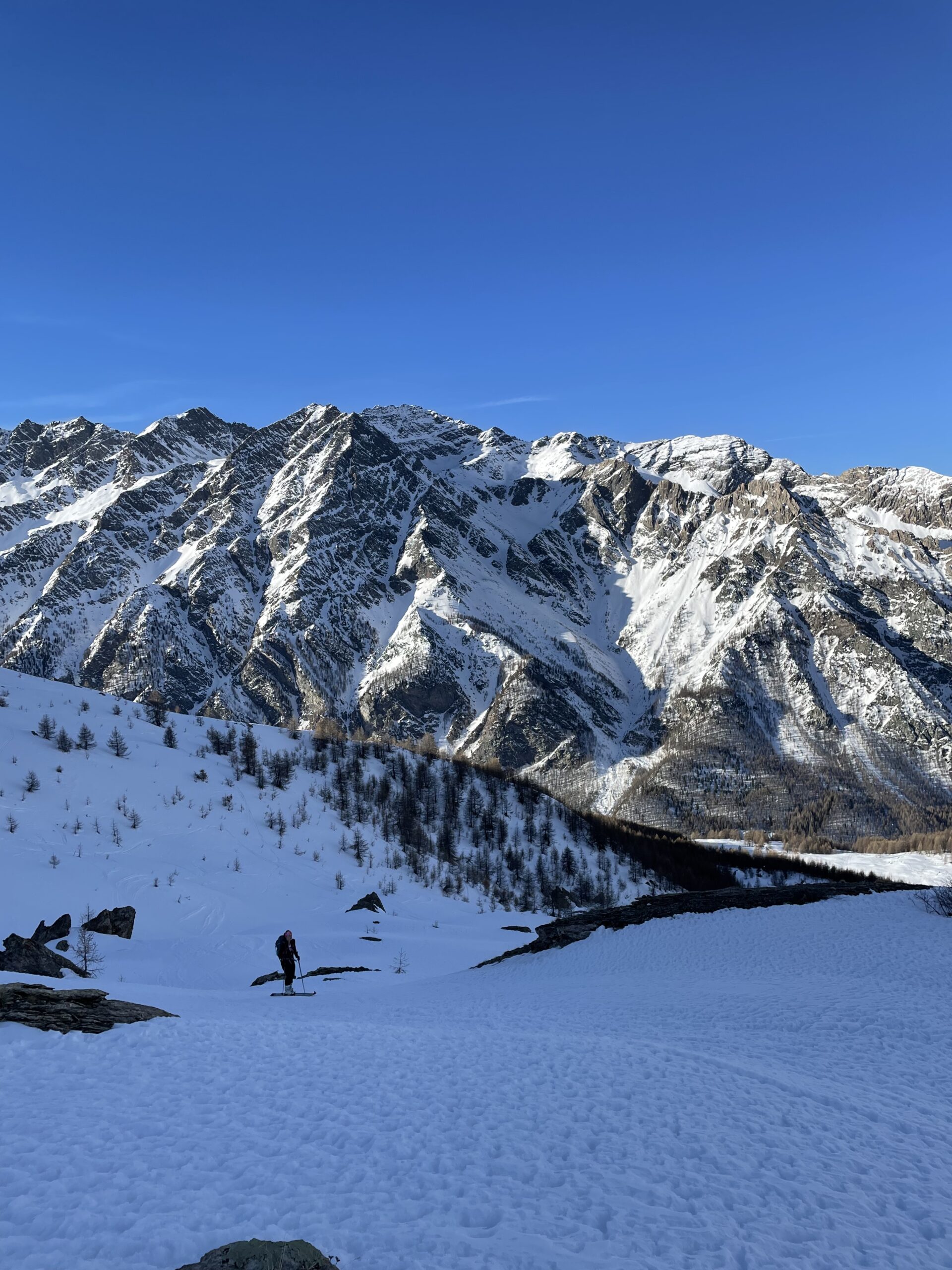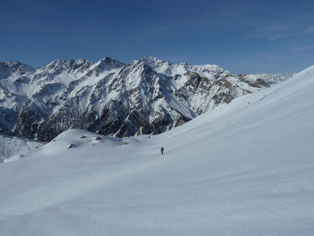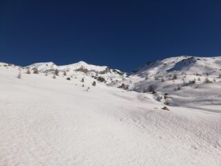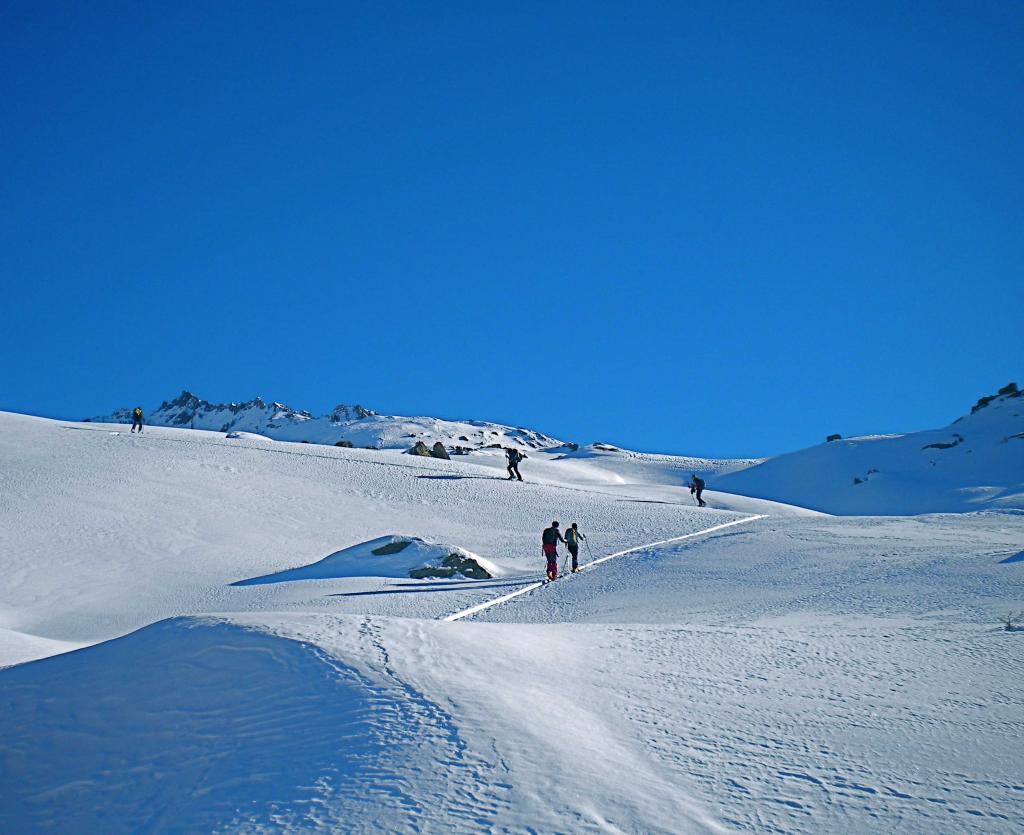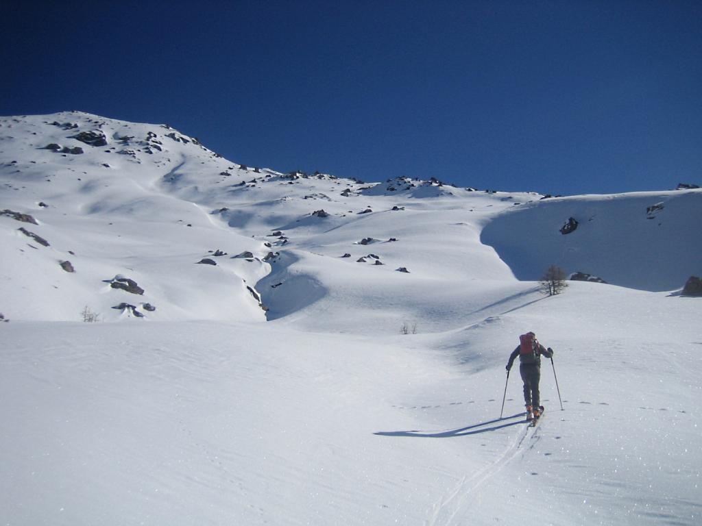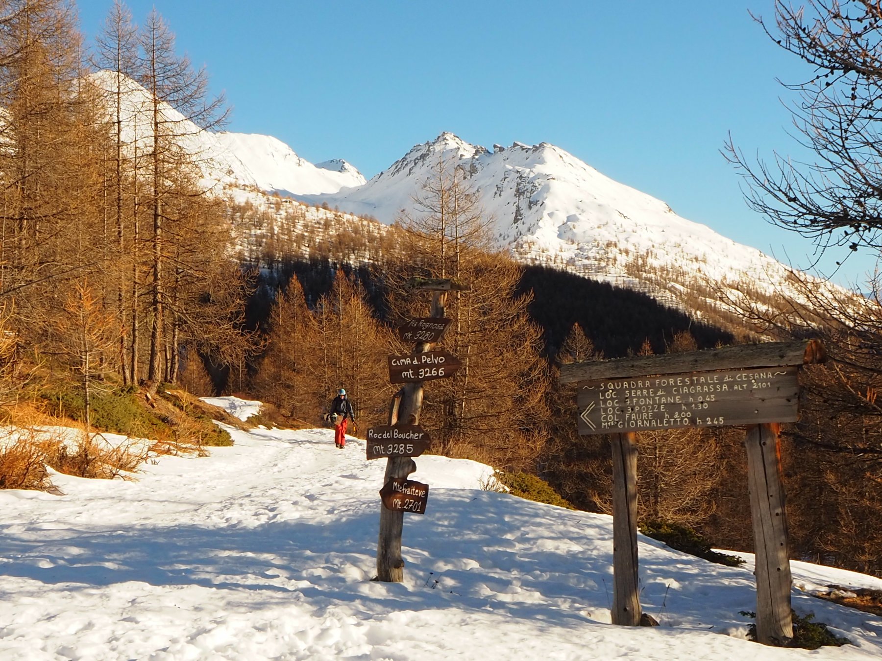 In caso di scarso innnevamento è possibile anche partire da qui riducendo il dislivello di 300m+.