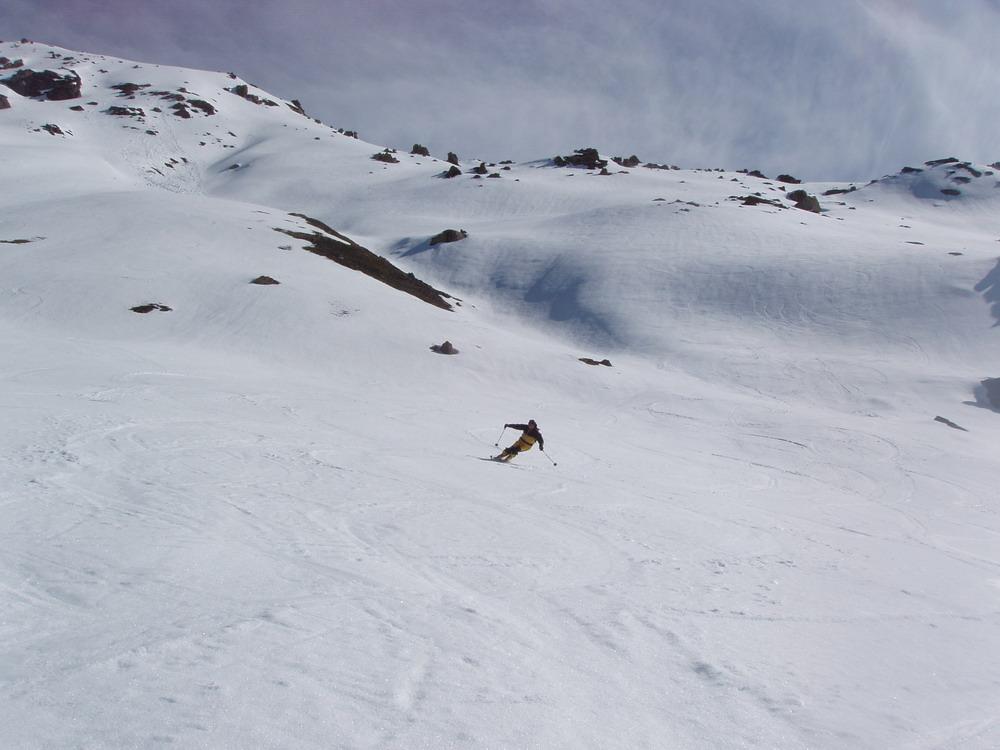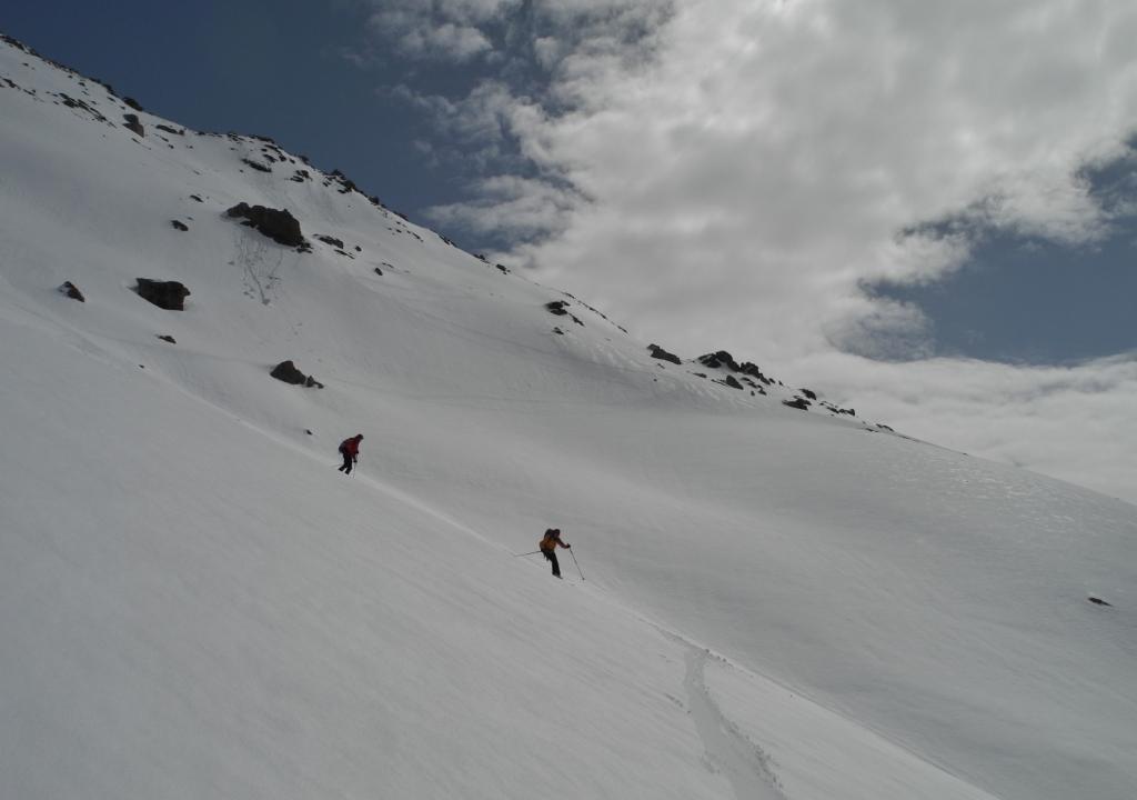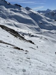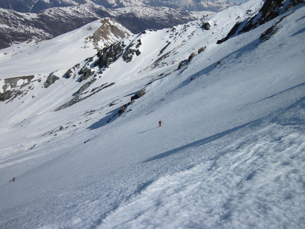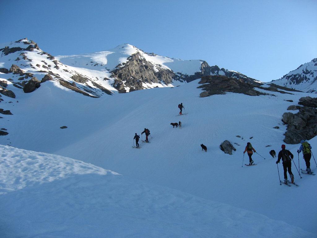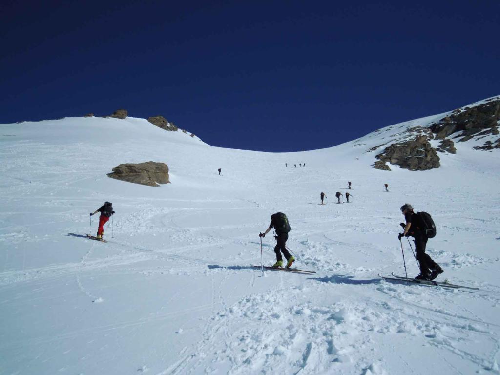 - 2. proseguire finchè la dorsale lo consente (fino a circa 2900 m) per poi con un breve traverso verso destra si recupera il centro del pendio-canale e quindi al Colle della Rognosa.
