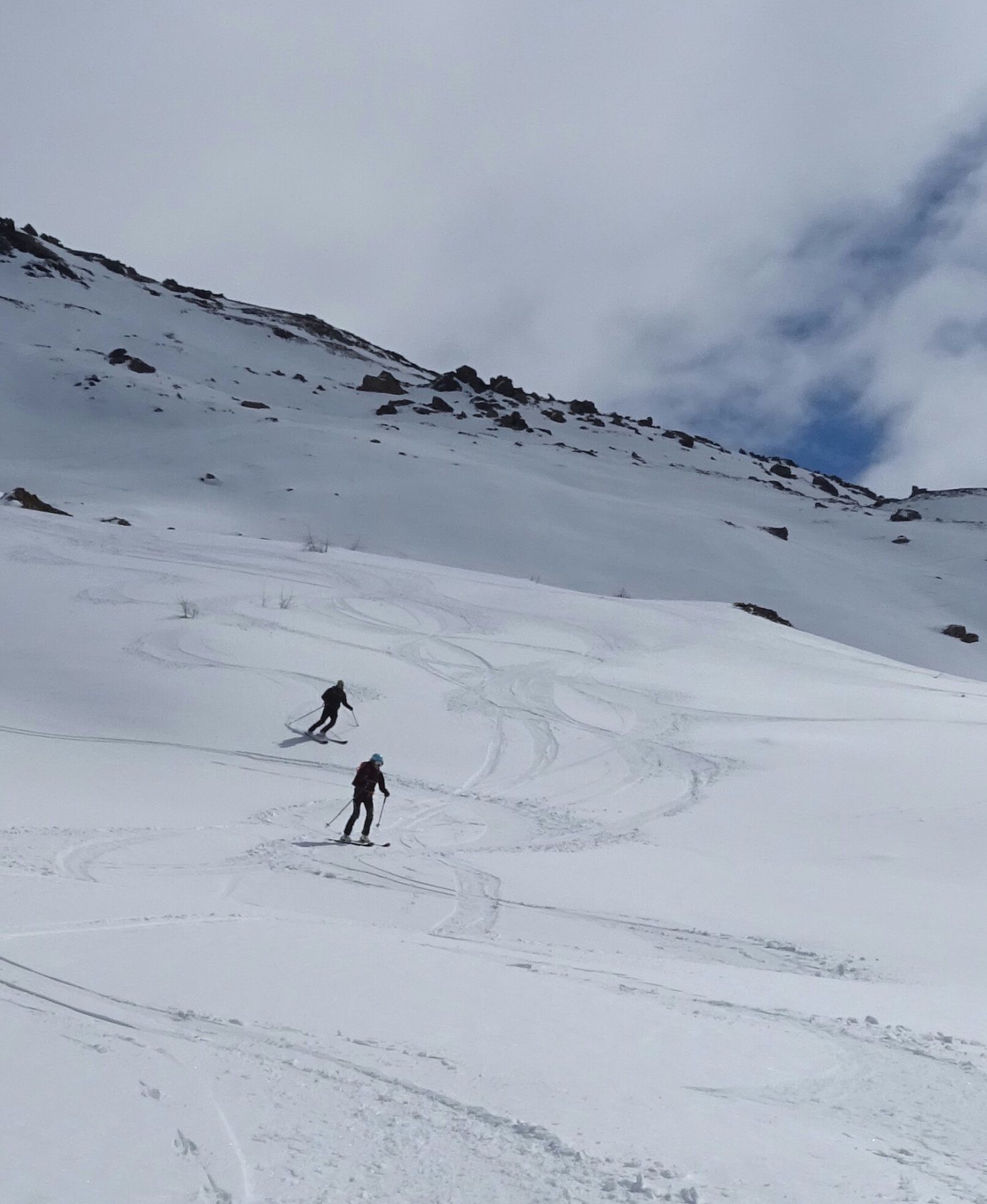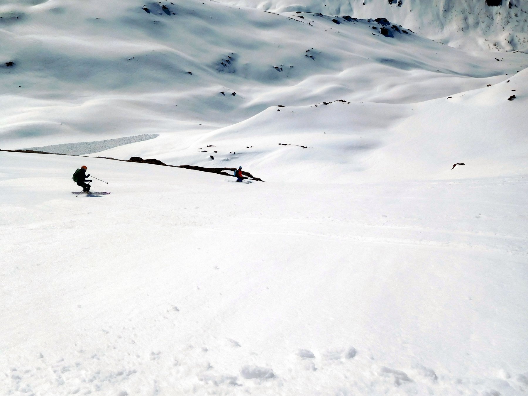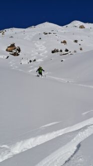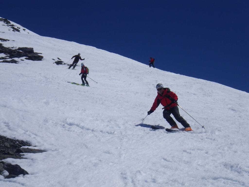 - 2. proseguire finchè la dorsale lo consente (fino a circa 2900 m) per poi con un breve traverso verso destra si recupera il centro del pendio-canale e quindi al Colle della Rognosa.