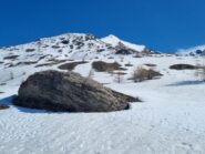 La si segue fedelmente (qui passa un sentiero estivo) fino a che questa si impenna e giunge in vista del Monte Sotto Rognosa, con a destra ben visibile la Punta della Rognosa: ora due possibilità.