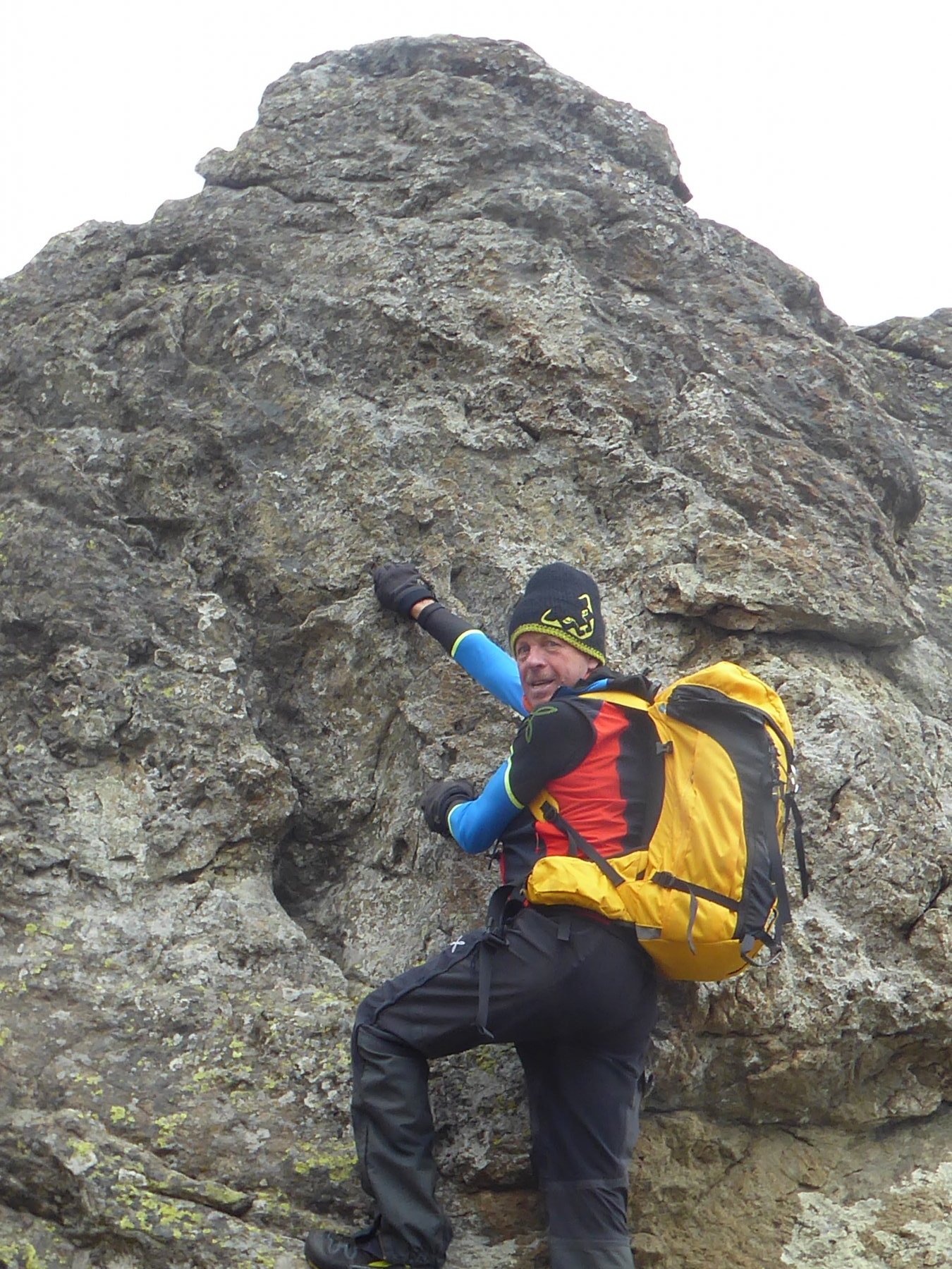 Partiti da Suppo per le vie di arrampicata nella stupenda faggeta verso la via dei Torrioni fino all’ultimo imponente della Marmotta da dove poco dopo si attacca la pietraia finale con enormi blocchi di Roccia, con qualche passaggio un po’ impegnativo, oggi anche con qualche macchia di neve che ha reso ancora più complicato l’itinerario, gita molto bella per l’ambiente per me discretamente impegnativa . Discesa per il colle tra il Rognoso ed il Civrari verso il vallone del Messa e poi verso Suppo, un po’ di bei fiocchi di neve degni di un vero dicembre ci hanno accompagnati all’arrivo….. Grazie grande Teddy :-*