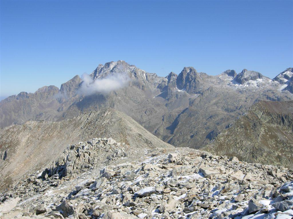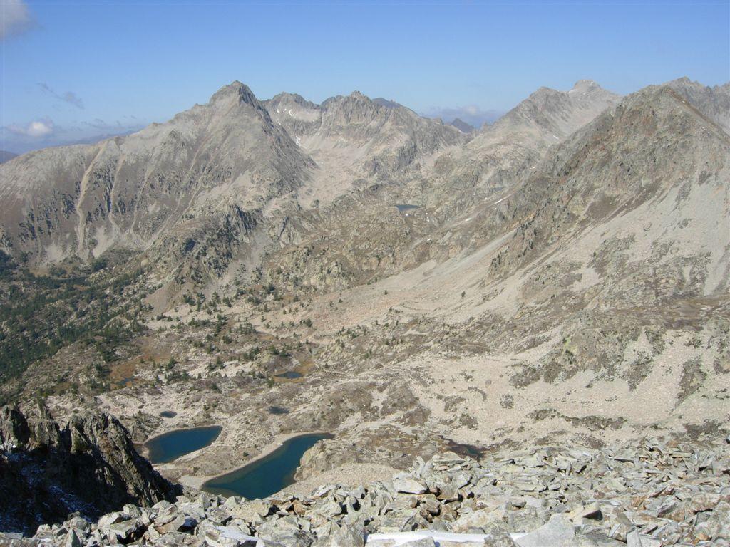 Bellissimo il panorama sui sottostanti lacs de Fremamorte, sulla zona del Giegn, Caire de Prefouns, Cima di Fremamorta, il Matto, tutto il gruppo dell’Argentera fino al Gelas, ecc, ecc.