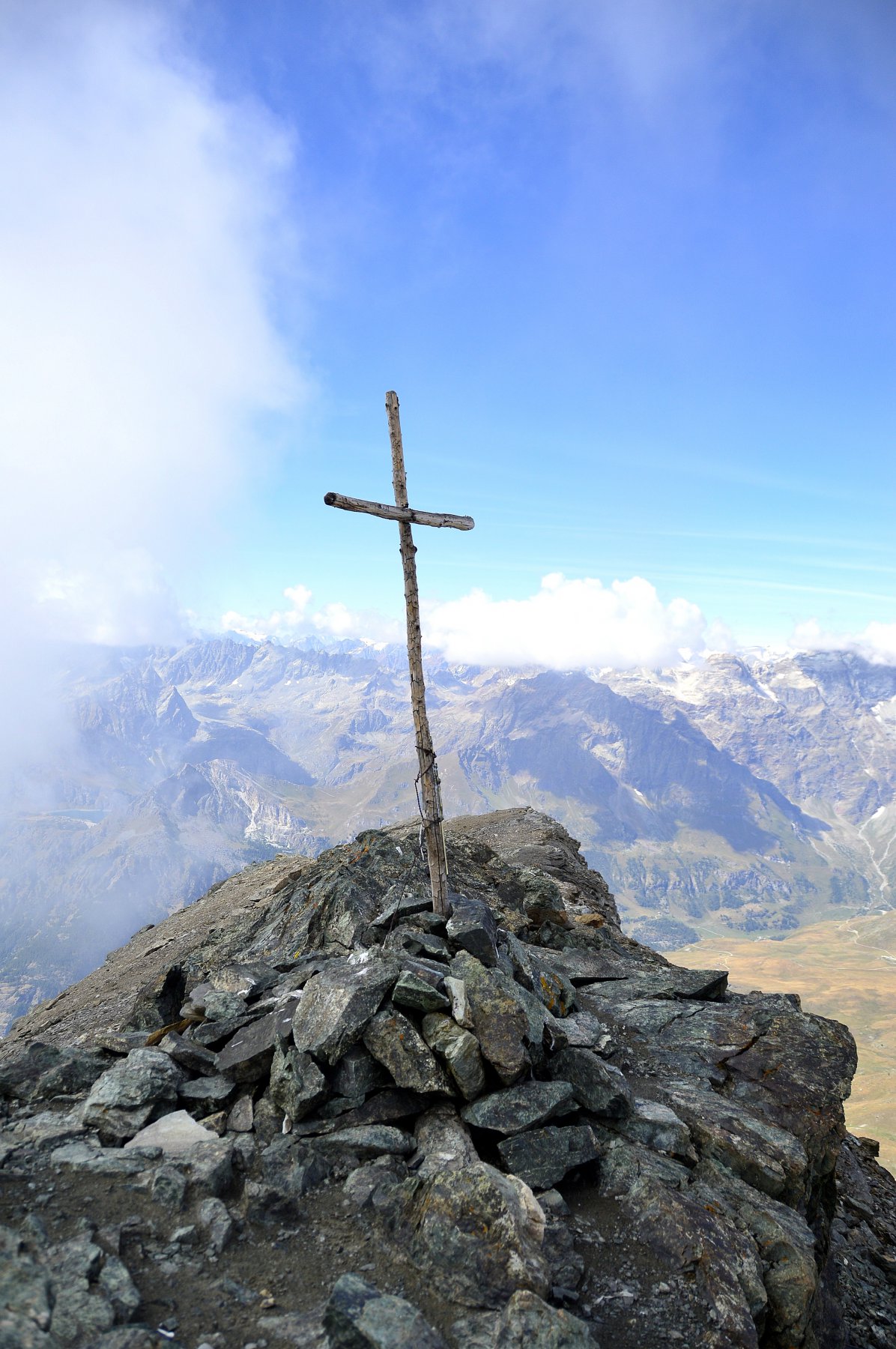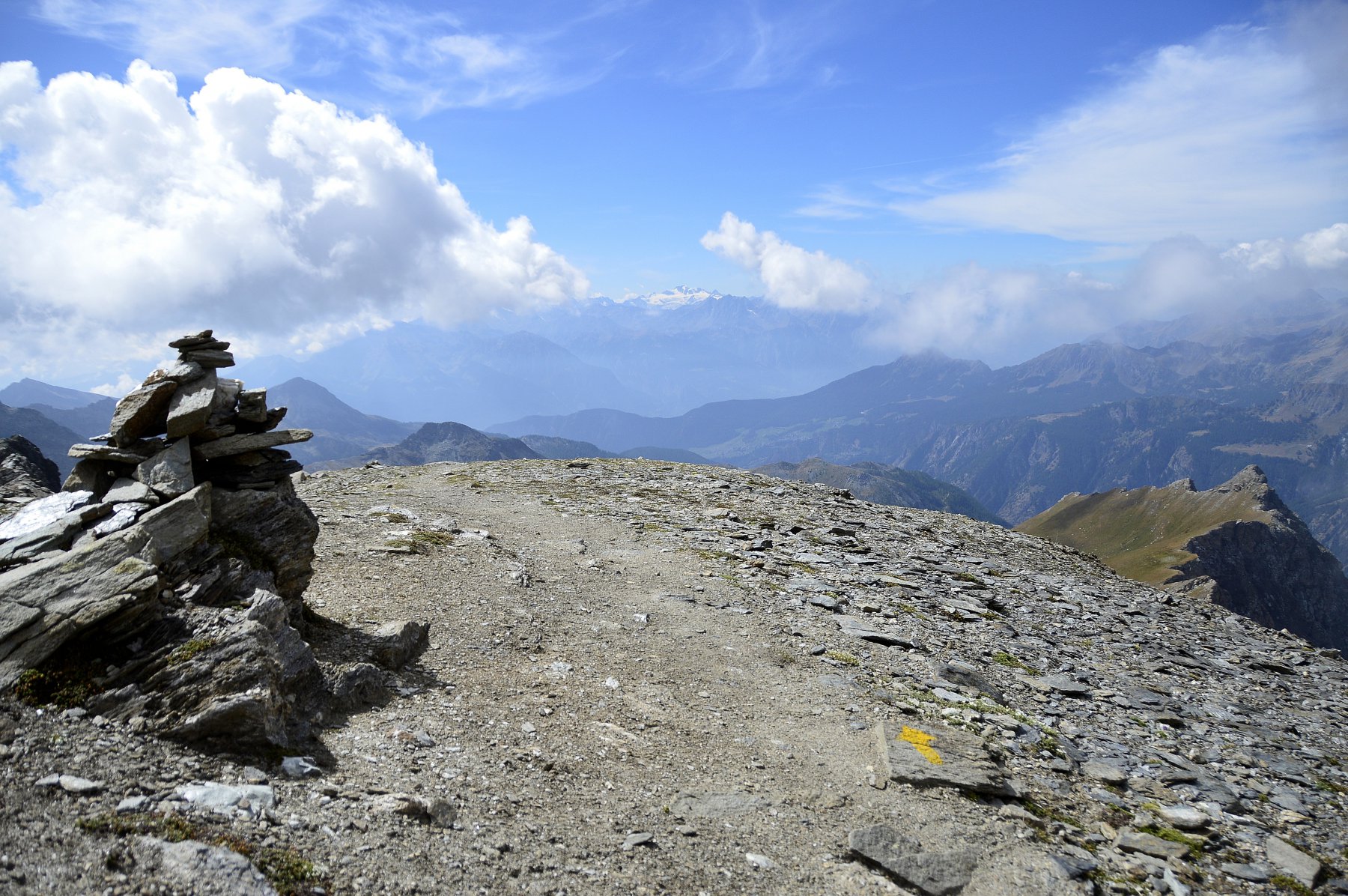 Salito a Cheneil con l’ascensore pubblico (un lusso!), poi sentiero panoramico che alterna tratti ripidi (come quando si deve risalire la bancata rocciosa a fianco del torrente Roisetta) ad altri in cui concede più respiro. Oltrepassato il bivio per la becca d’Aran, dopo un bel ripiano pascolivo nuova ripida salita, e poi si giunge in ambiente lunare e detritico, si risale sempre fra ometti e segni gialli e si giunge in vetta.