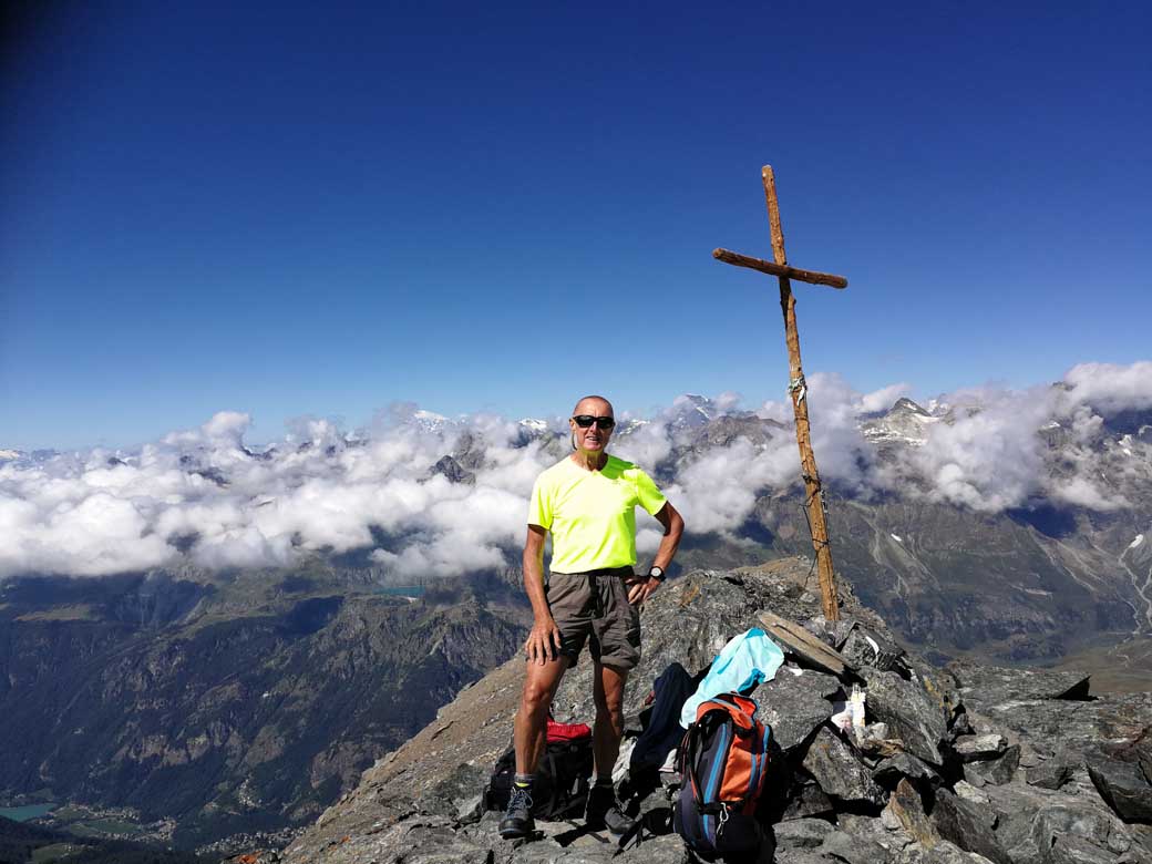 Meteo con nuvole che hanno parzialmente coperto solo il Rosa. Molti escursionisti sull’itinerario; folla a Chneil.