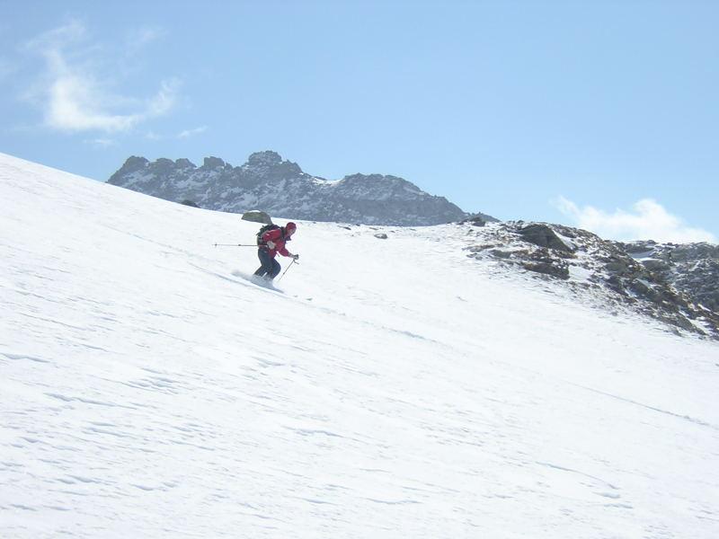 in alto trovati tutti i tipi di neve; sotto i tournalin e in basso dopo il traverso ancora una discreta farinella per chiudere in bellezza; oggi c’eravamo solo noi e una coppia incontrata in discesa. Bel panorama