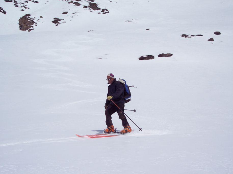 Partiti alle 8 dal parcheggio di Cheneil, neve dura dalla piana, utili i rampant, indispensabili nei traversi. Salita solitaria con il sempre ottimo Gastone. Leggera brezza in salita, vento forte in vetta, subito dietro front verso valle. Discesa favolosa con neve sempre trasformata e portante. Fattibile per altri giorni se la temperatura tiene, scendere prima delle 13.