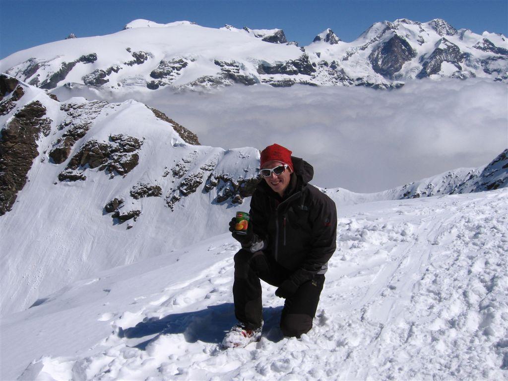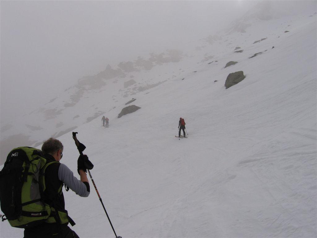 si calzano gli sci da ponticello nel pratone. Alla partenza tempo coperto con nebbiolina, a 200 metri di quota dalla vetta buco di sereno e giornata spettacolo con vista di tutte le cime dell’arco alpino. Per alcuni tratti di salita in traverso meglio calzare i rampant. Discesa in sicurezza su neve bella inizialmente poi sempre più sfondosa. Le 3 stelle sono un pò generose ma questa gita merita sempre