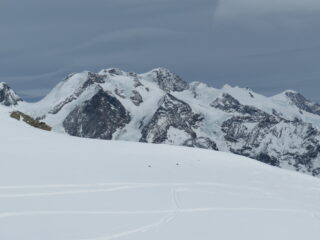 Ghiacciai dei Breithorn, Pollux, Castore e tutto il gruppo del Rosa in pessime condizioni (speriamo nelle nevicate primaverili, come l’anno scorso)