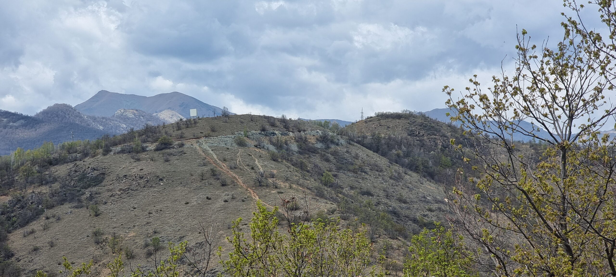 Si scende dallo stesso percorso fino a tornare al Colle di Ciantel dove si svolta in discesa a sinistra per aggirare i versanti nord ed est del M. Giovetto, nostra prossima meta. Si trascura l’evidente bivio a sinistra che porta a Benne e pure il meno evidente bivio successivo sempre a sinistra. Si giunge così all’incrocio con il sentiero che da Case Ciocu sale al M. Giovetto lungo la sua dorsale sud-est. Si svolta ora a destra in salita in direzione del M. Giovetto, seguendo la ripida dorsale fino alla vetta, anche qui con tracce di passaggio di moto.