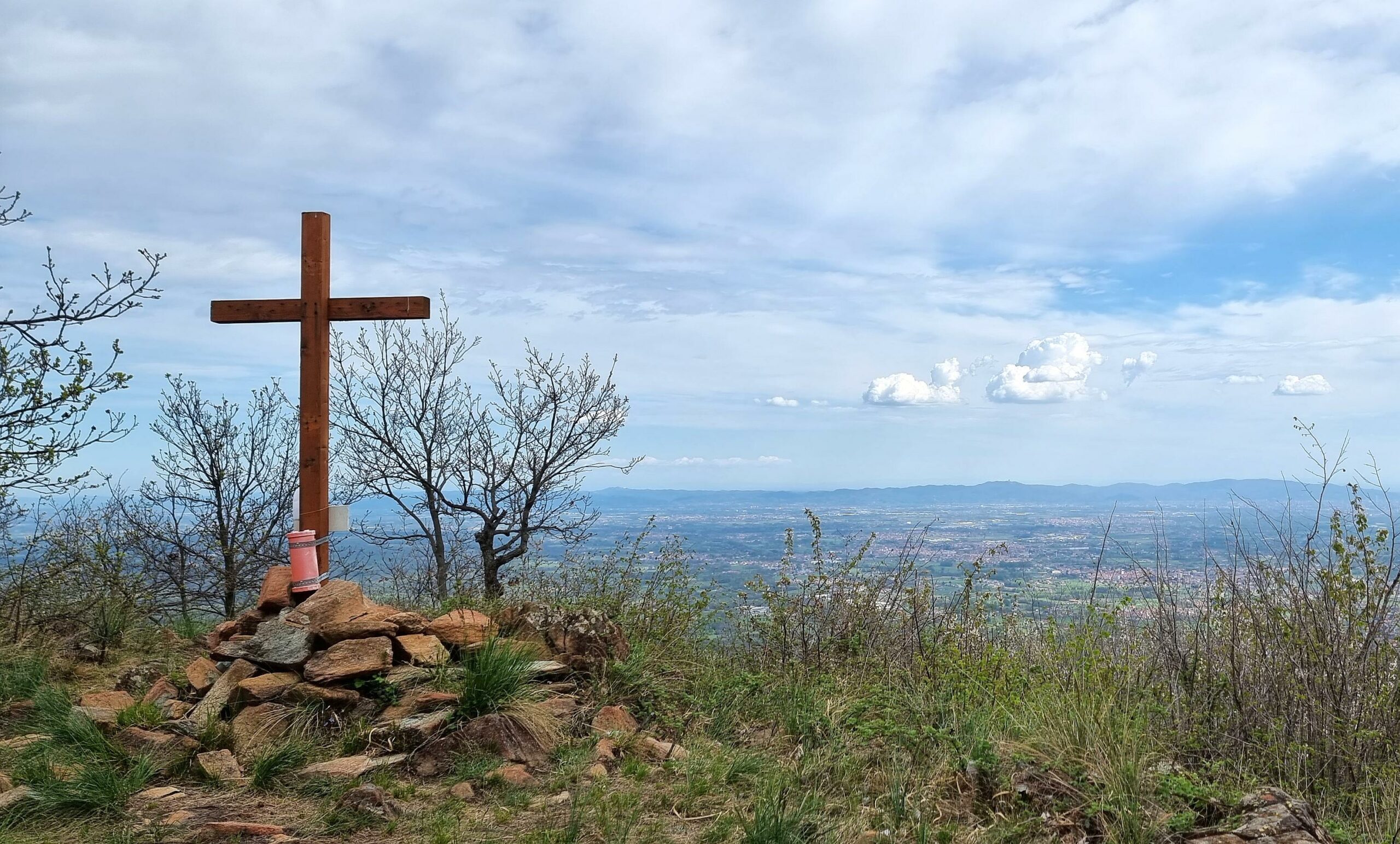 Al colle si svolta a sinistra e dopo un breve tratto si esce dal bosco proseguendo sul sentiero ripido e diretto, con molte tracce di moto. Al termine del tratto ripido, il sentiero svolta in diagonale a sinistra raggiungendo così una strada sterrata che si segue in salita in direzione del M. Rolei. Giunti poco sotto al monte e dove la sterrata svolta a sinistra, la si abbandona verso destra per imboccare un poco marcato sentierino che con alcune svolte ed alcuni ometti ci porterà sulla vetta di questa montagna sormontata da una croce.