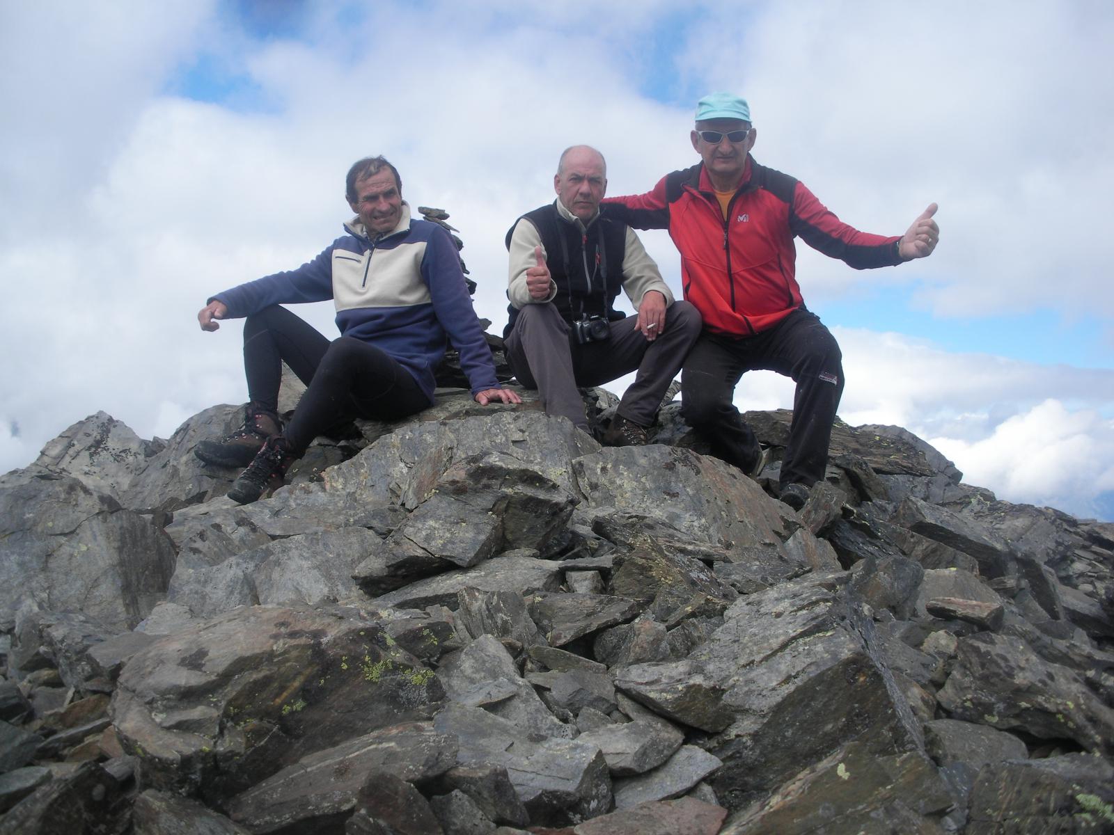 Bella e rilassante escursione, guarda caso sempre in montagna dove non si fa terrorismo, nella maniera piu’ assoluta, ma si cammina soltanto. Scelto di salire da Eaux Rousses anziche’ da Rhemes N.D. La motivazione e’ semplicemente legata al fatto di poter cosi’ disporre se non altro di un agevole e comoda mulattiera che abbiamo sfruttato quanto piu’ possibile x un un rapido approccio al Col de Sort. Abbandonata solo poco oltre l’alpe Diouan x entrare nel valloncello detritico con solo piu’ rari e sbiaditi segni di vernicie gialla qua’ e la’, ad aiutare al meglio nella ricerca del percorso meno disagevole a guadagnare il colle. Il resto della salita dal colle in poi, nient’altro che una cresta parete senza percorso obbligato su sfasciumi, la cui insidia maggiore e’ stata quella di doverci camminare sopra pari come scivolare sul sapone, per la formazione di verglass in superficie, a seguito del brutto tempo che ha infierito qui fino a ieri. Nonostante cio’ la salita ha offerto anche qualche spunto piacevole, con il sole a tratti far capolino da dietro le nuvole in un cielo in prevalenza nuvoloso. E una volta in vetta ecco che istintivamente la curiosita’ invita a buttare l’occhio dall’altra parte, alla ricerca di un possibile percorso alternativo alla salita. Che, quasi sempre si riesce a individuare a seguito di un esame preliminare, anche se non in possesso di informazioni relative a precedenti passaggi che in questo caso pare non ve ne siano stati ad oggi, e’ un po’ come andare all’avventura, e che avventura sia. Di fatto la cresta che prosegue in direzione nord verso la P.Bianca, fino ad un’evidente sella la cui quota 3211m ne indica l’ubicazione esatta nella mappa all’1:25.000, si puo’ considerare al massimo una EE/F. Dalla quale senza inventarsi poi chissa’ che cosa di strano,(solo terreni ripidi ma non difficili) prendere a verticalizzare giu’ fin sopra i tetti della reale casa di caccia, in localita’ Orvieille a riprendere il sentiero n.2 gia’ percorso all’andata. Un bel giro di ampio respiro, piu’ l’aggiunta di un pizzico d’avventura al suo interno. Con i ritrovati Carlo e Corrado.