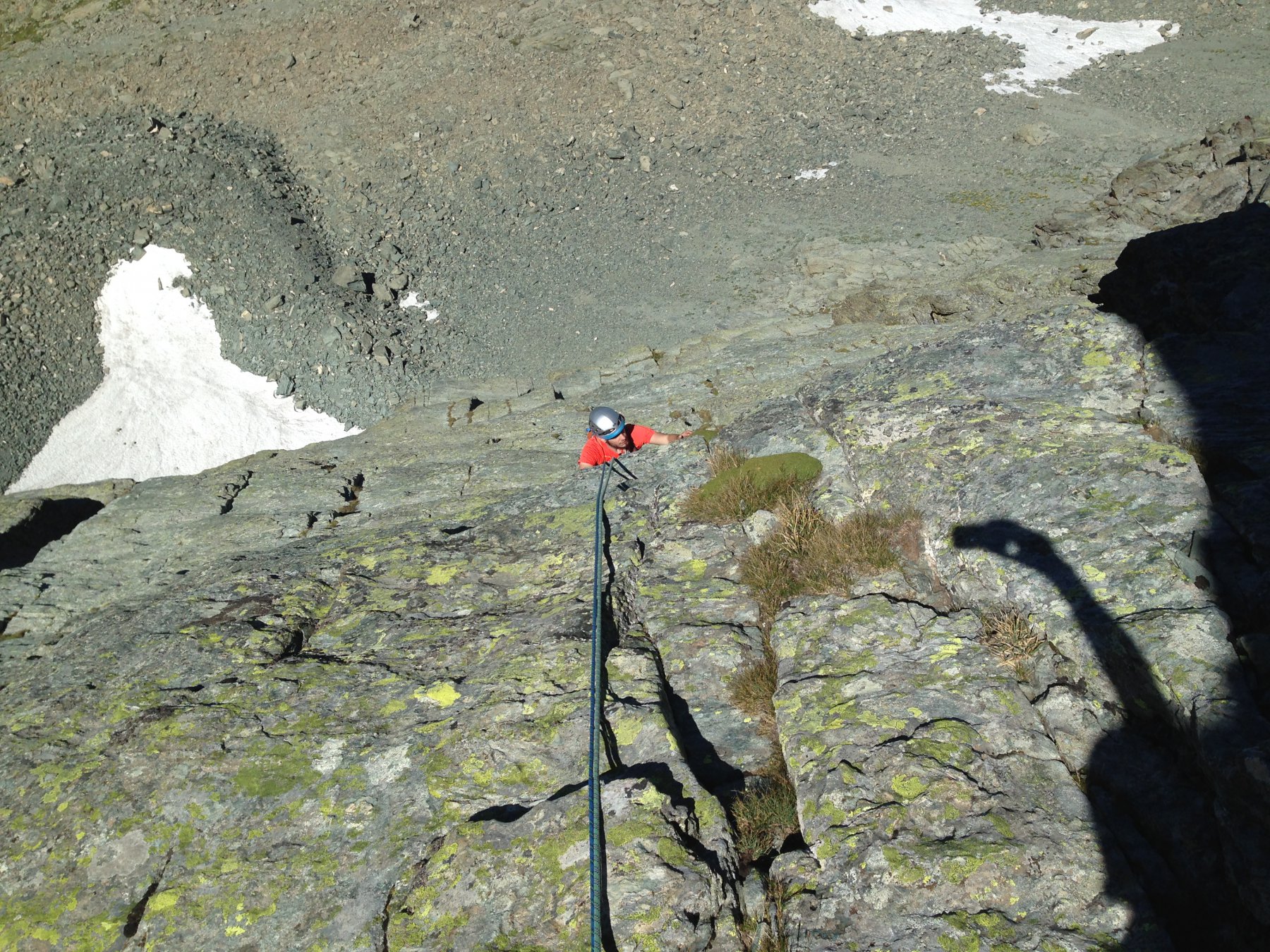 Salita divertente. L'ambiente e l'arrivo in punta danno soddisfazione e ripagano del tempo perso per cercare l'attacco lungo la pietraia .