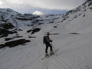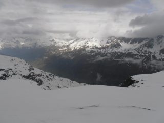 partiti presto 4,30′,alle 6,30′ parcheggiamo la dove la neve ostruisce il passaggio x auto normali , poi da li giusto la relazione del 10 magg. (1km a piedi )sci in spalla fin al pacheggio con indicazione (arcelle) da li si segue un sentiero nel bosco evidente ,fin la dove si sbuca in un valloncello evidente da dove si mettono gli sci,si e ulla verticale della cima.saliamo e il meteo e buono sereno , ma alle nostre spalle dall’altra parte della valle (vanoise) parecchie nuvole minacciose!!man man la neve diventa sempre più sfondosa, e praticamente da battere ,marcia, ecc..,da li sempre valutando la parte più critica e il canale pendio drittino di q2300,gia parecchie valanghe a pera cadute in precedena,da li in su i pendii sono (normali)ci seguono altre tre coppie di alpinisti partiti dopo di noi ,mentre il tempo peggiora nuvole alte a 3000 che corrono, saliamo sempre andando a ribattere la traccia evidente dei giorni scorsi,fino a q 3300,poi stop troppa nebbia .. 3°,e solo due ragazzi al nostro seguito che aspettiamo nel metre speriamo in una schiarita che non e mai arrivata , scambiamo 4 parole ,loro sono ancor più mattinieri di noi ,arrivano da (savona ).optiamo tutti x retrofont, primo pezzo di discesa sulla traccia ,poi a 3000 m visibilita buona e giù in (PAUTER)(traduco poltiglia )fin giu sempre meglio della crosta,bisognerebbe avere gli sci larghi 40cm,allora sorfi bene.nell’ultima parte del canale nel bosco piu bella . grazie dario x aver avuto vogla di sbattersi..,merita un’altra visita sciisticamente molto bella (in condizioni)ciau ,un saluto ai ragazzi incontrati.
