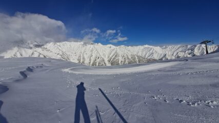 Partito alle 7 a camminare con 2 gradi e pioveva, poi man mano migliora ma è sempre pesante. Gran culo a battere!! Inizio discesa alle 9 e 15 su neve pesante ma si fanno ottime curve fino a metà gita poi delirio!!! Quindi entrato in pista e gas a martello fino all’auto. In solitaria. Bella li! Buona pasquetta a tutti e ora griglio anche io…..
