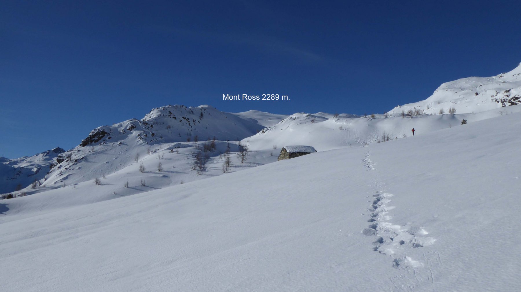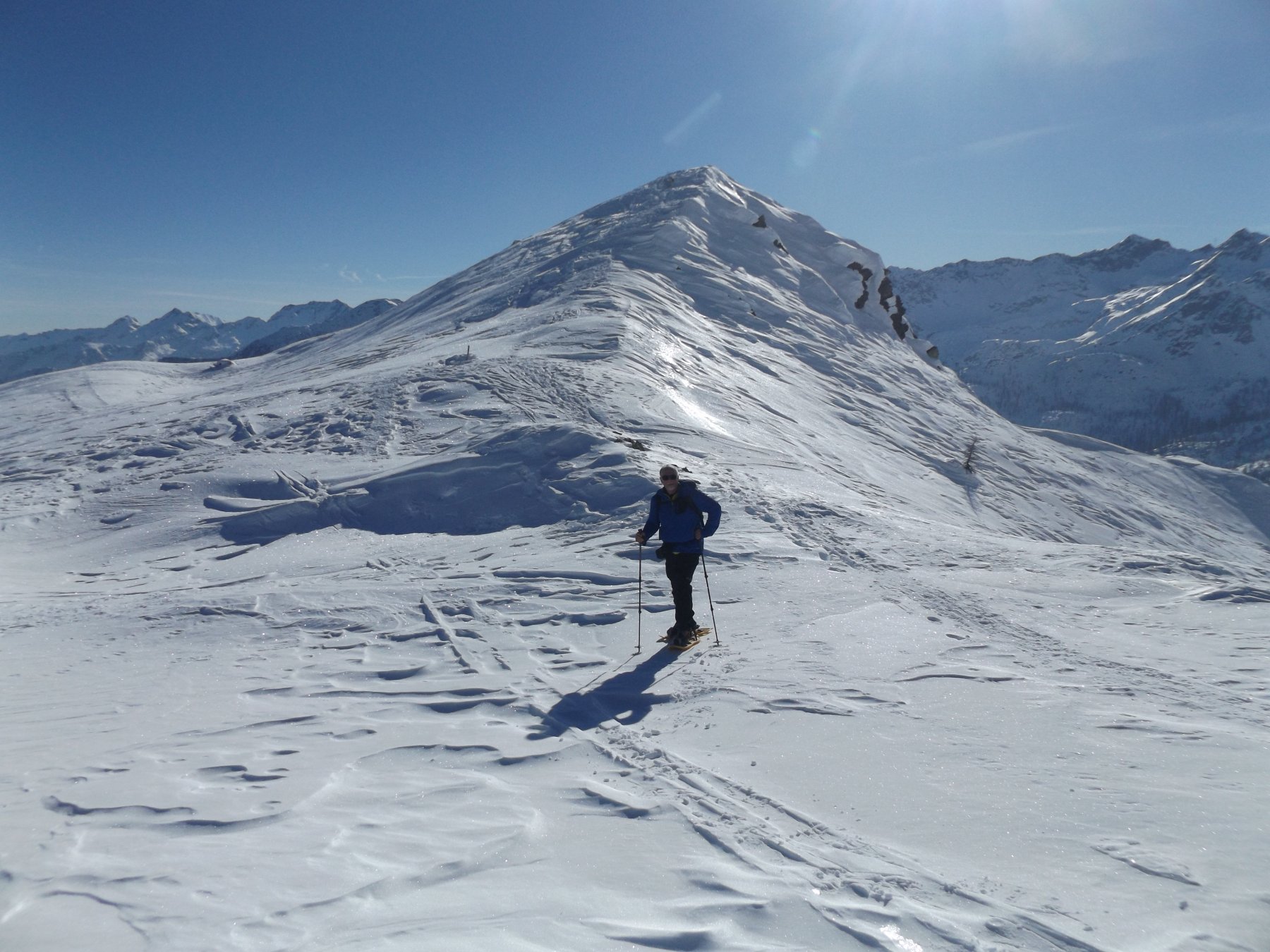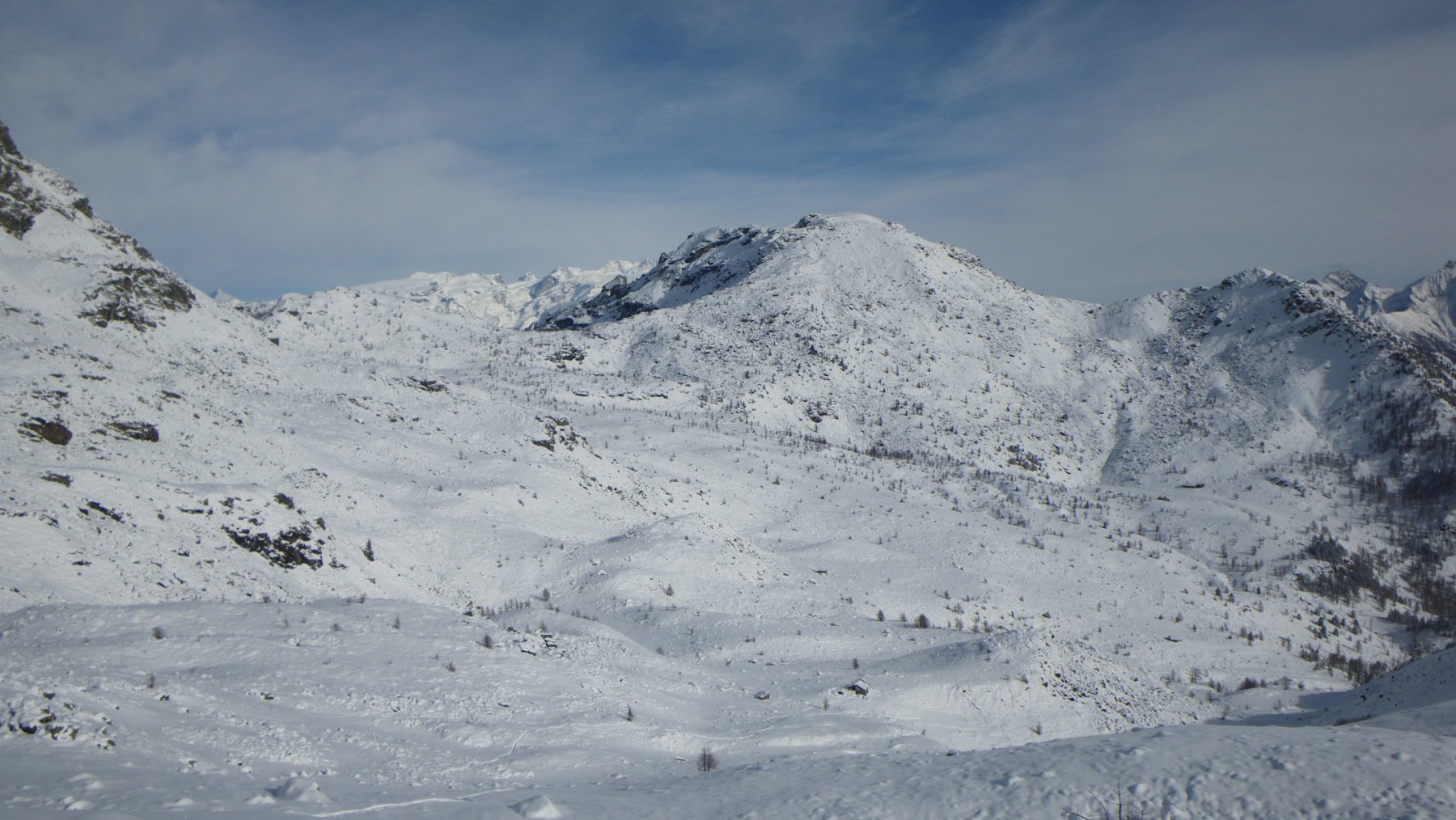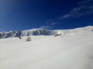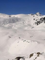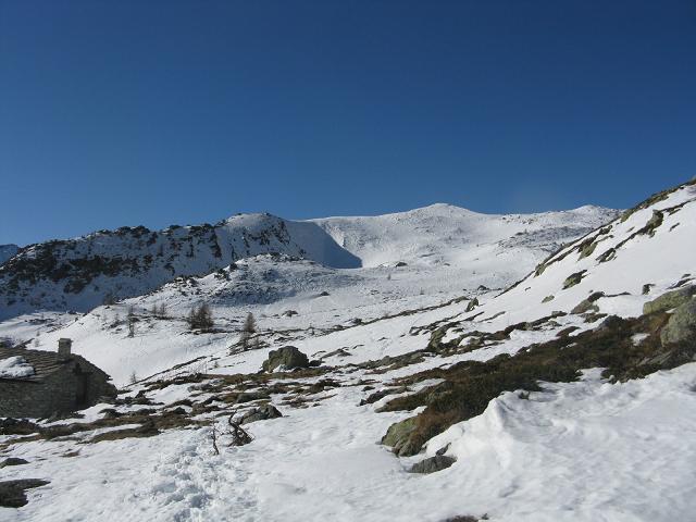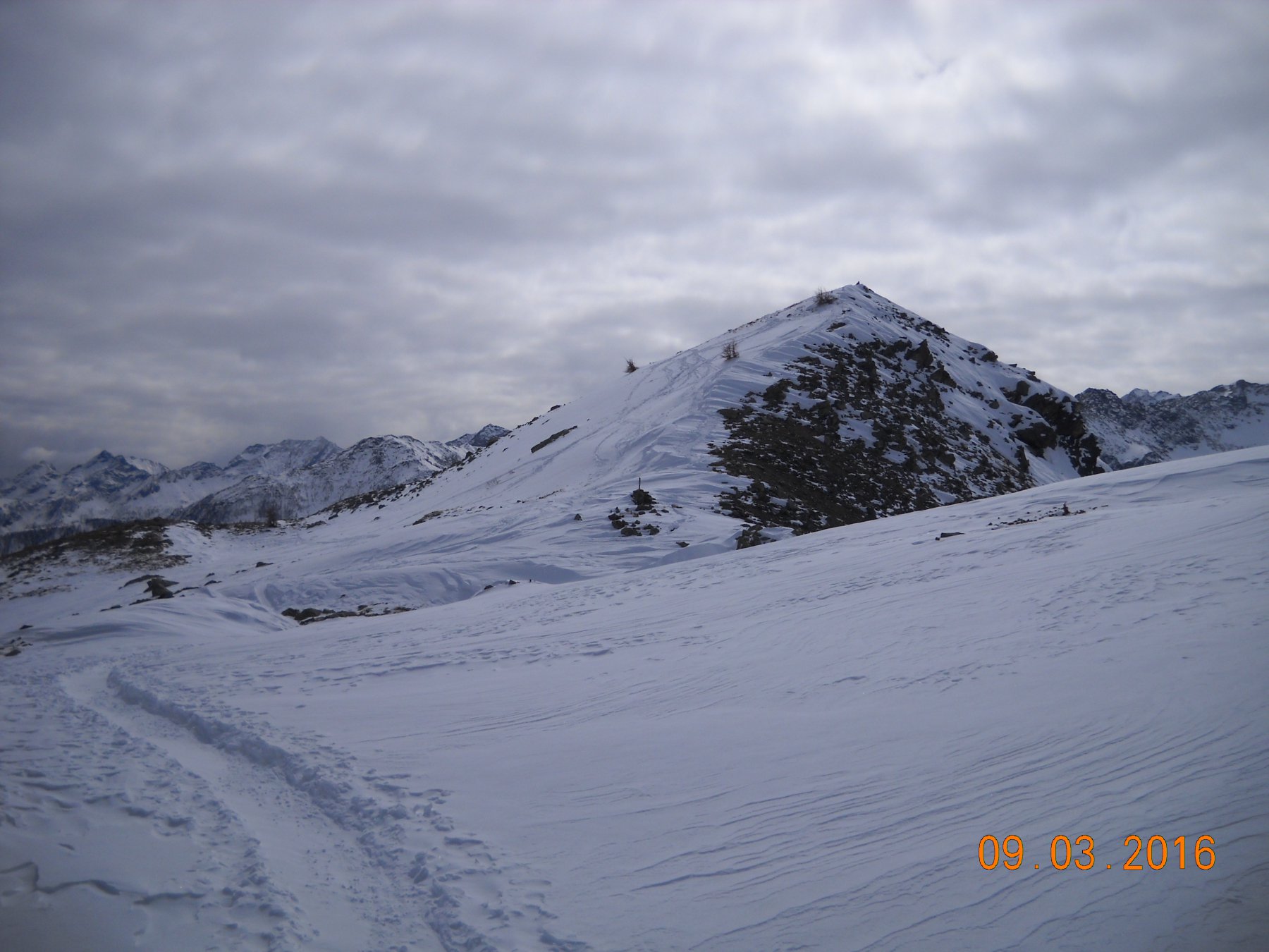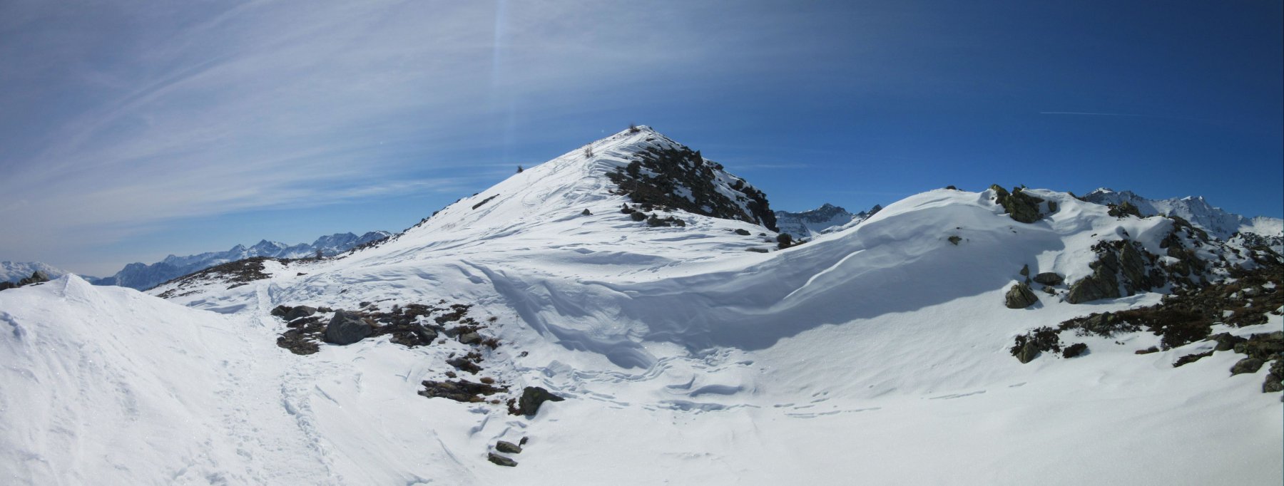 Da qui il percorso rimanente è molto evidente, con la vetta di fronte in direzione sud. Si raggiunge un rudere di alpeggio 2176 m. Oltre si apre il pendio finale, che si può risalire direttamente (moderata pendenza), oppure aggirare a destra raggiungendo un colletto. Da qui pochi metri lungo la comoda dorsale e si è in cima, 2289 m.