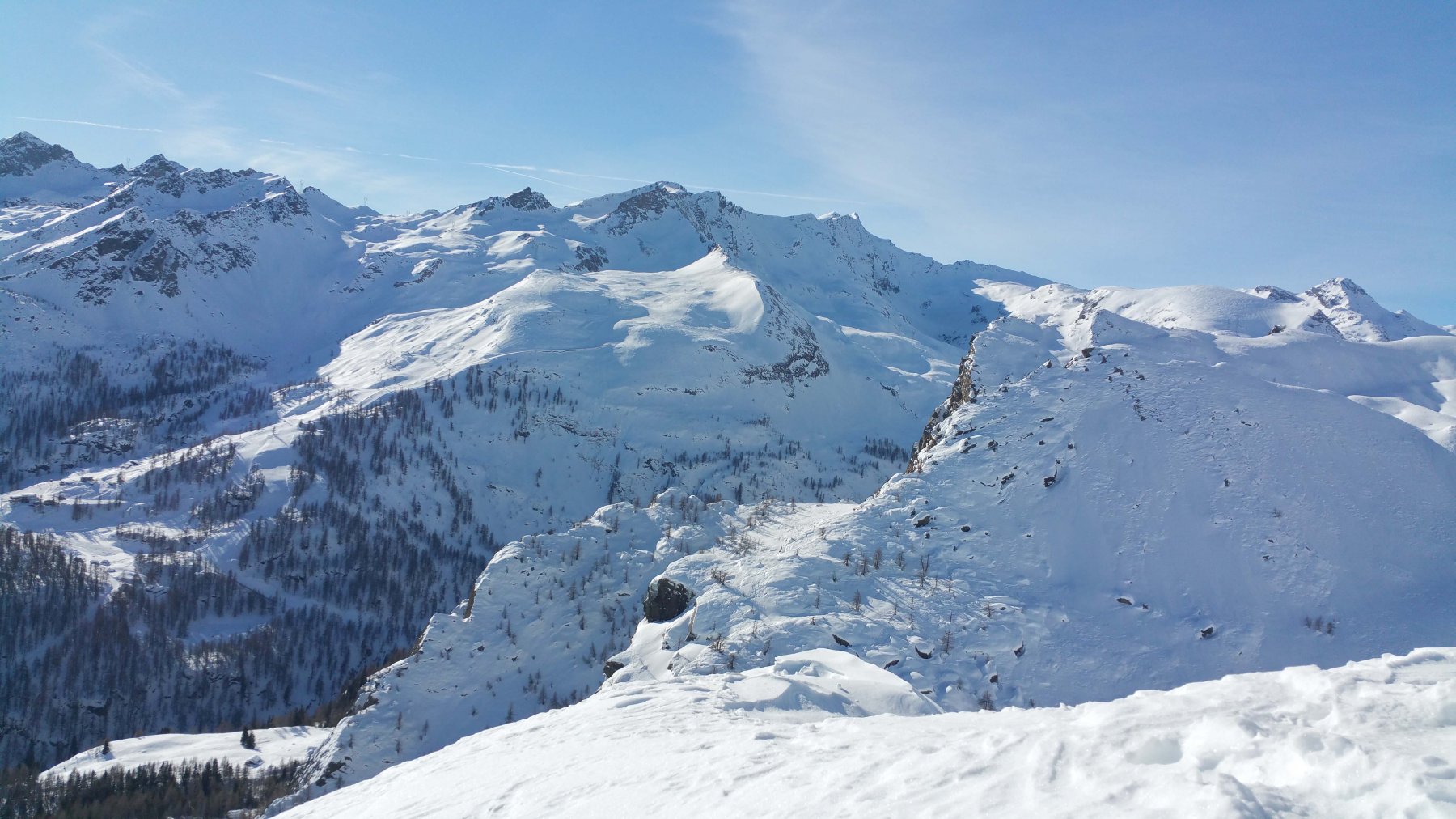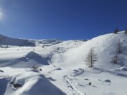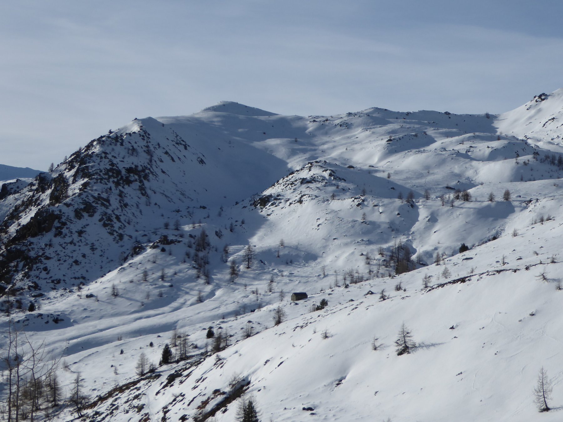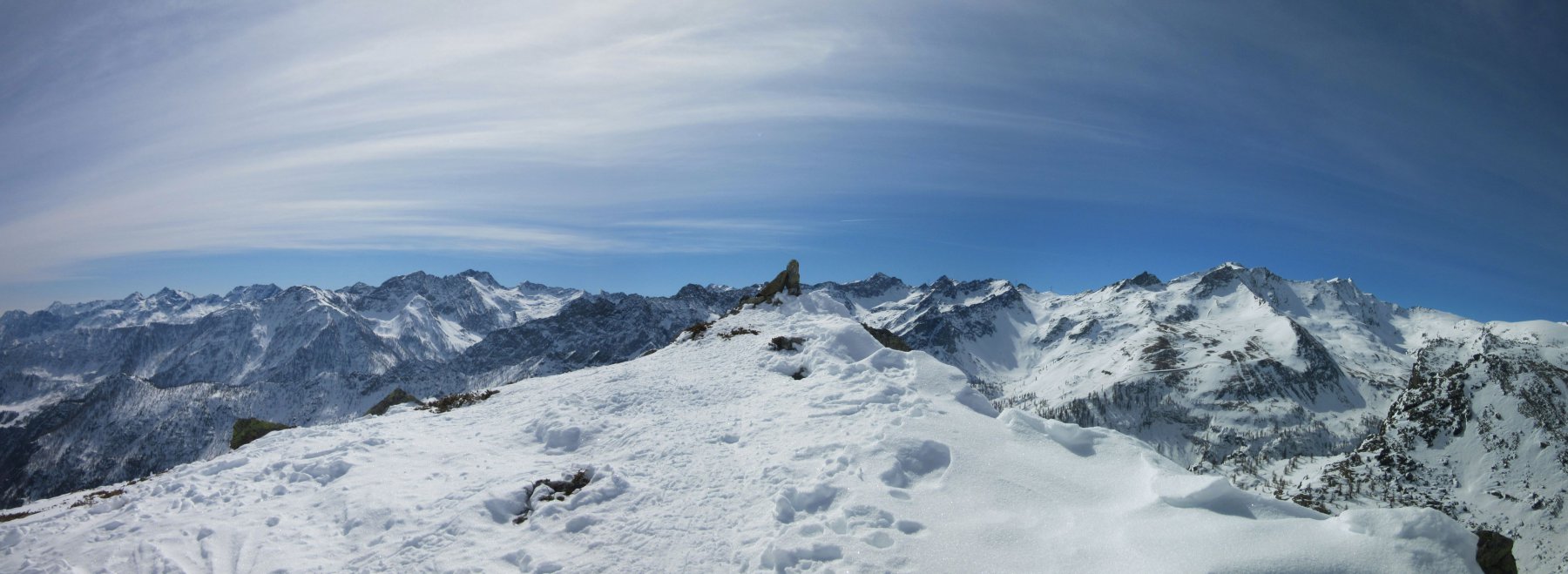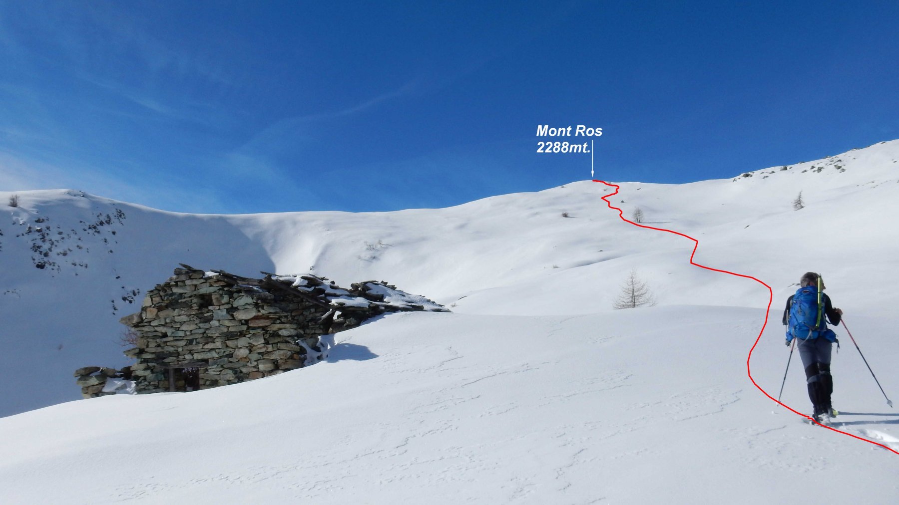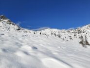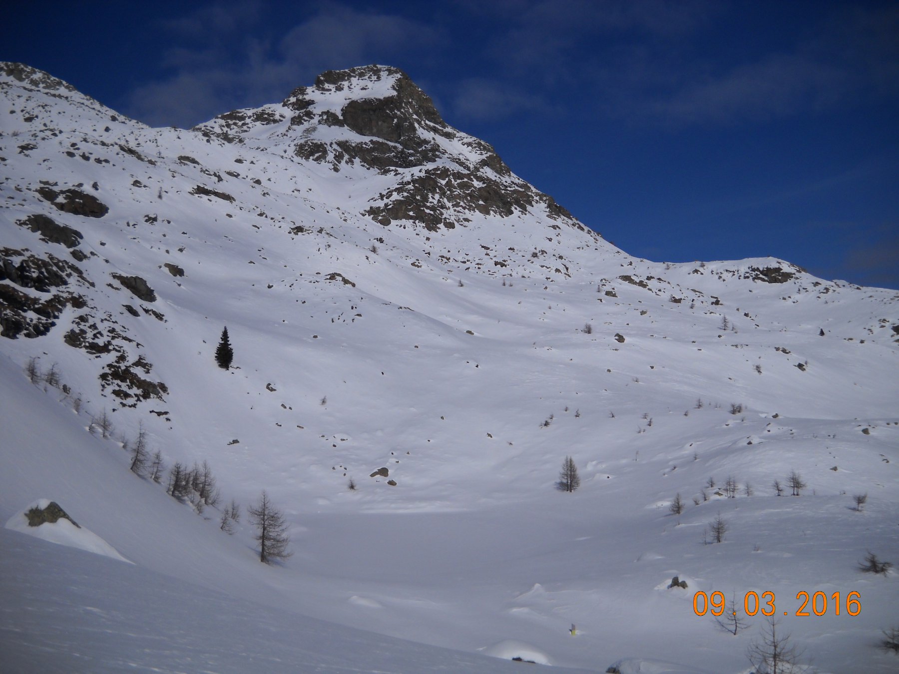 Da qui il percorso rimanente è molto evidente, con la vetta di fronte in direzione sud. Si raggiunge un rudere di alpeggio 2176 m. Oltre si apre il pendio finale, che si può risalire direttamente (moderata pendenza), oppure aggirare a destra raggiungendo un colletto. Da qui pochi metri lungo la comoda dorsale e si è in cima, 2289 m.
