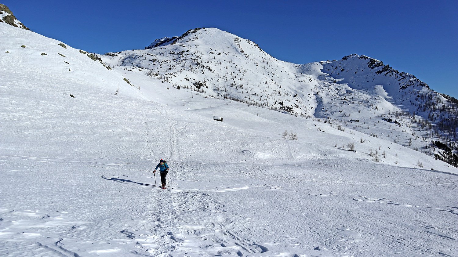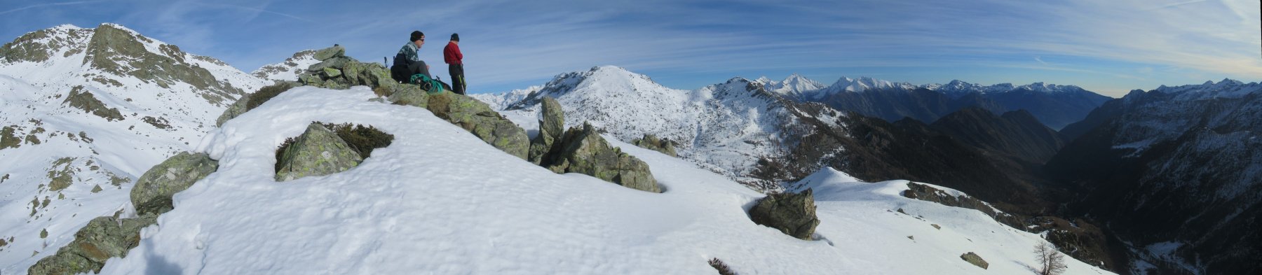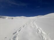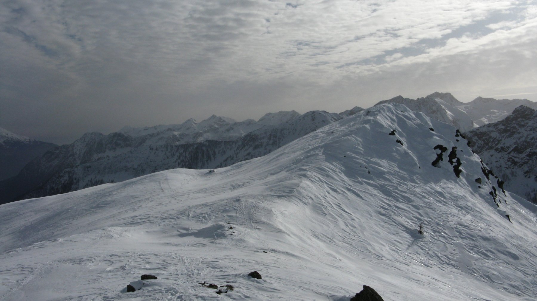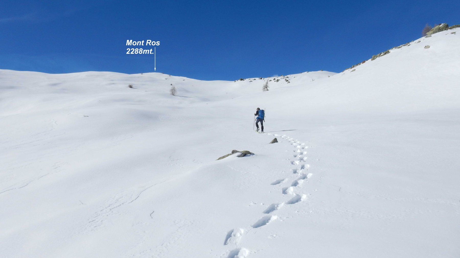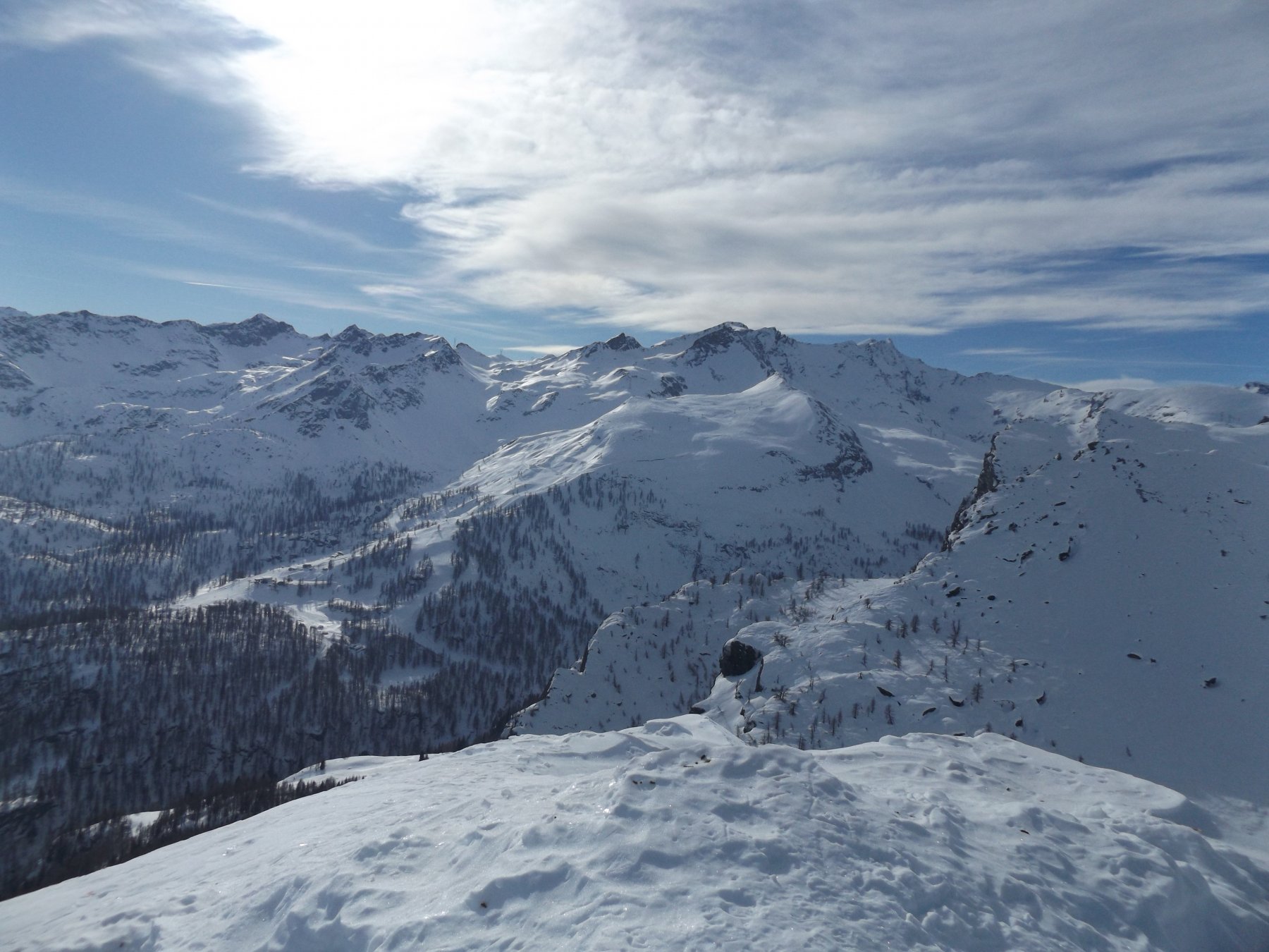 Da qui il percorso rimanente è molto evidente, con la vetta di fronte in direzione sud. Si raggiunge un rudere di alpeggio 2176 m. Oltre si apre il pendio finale, che si può risalire direttamente (moderata pendenza), oppure aggirare a destra raggiungendo un colletto. Da qui pochi metri lungo la comoda dorsale e si è in cima, 2289 m.