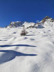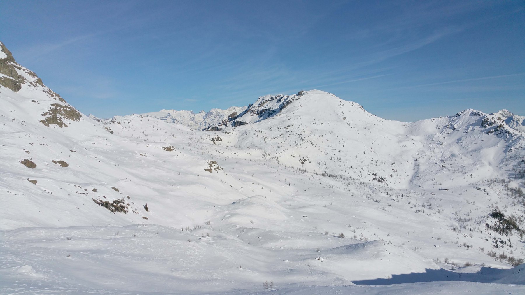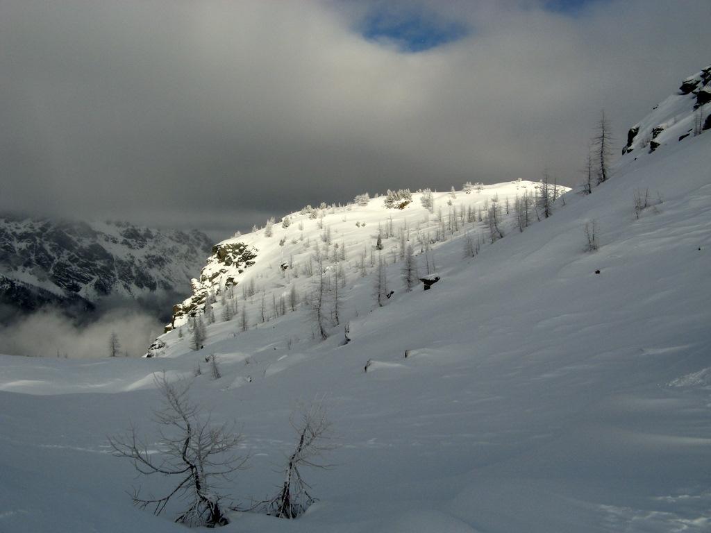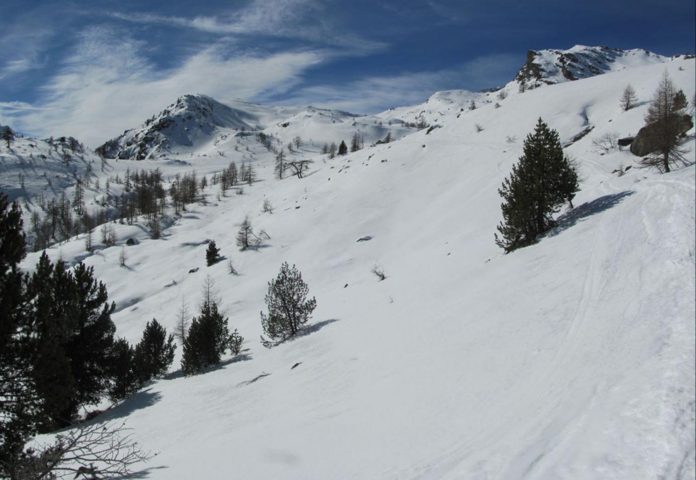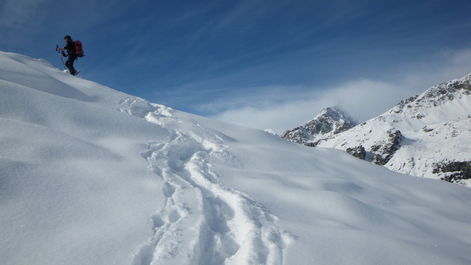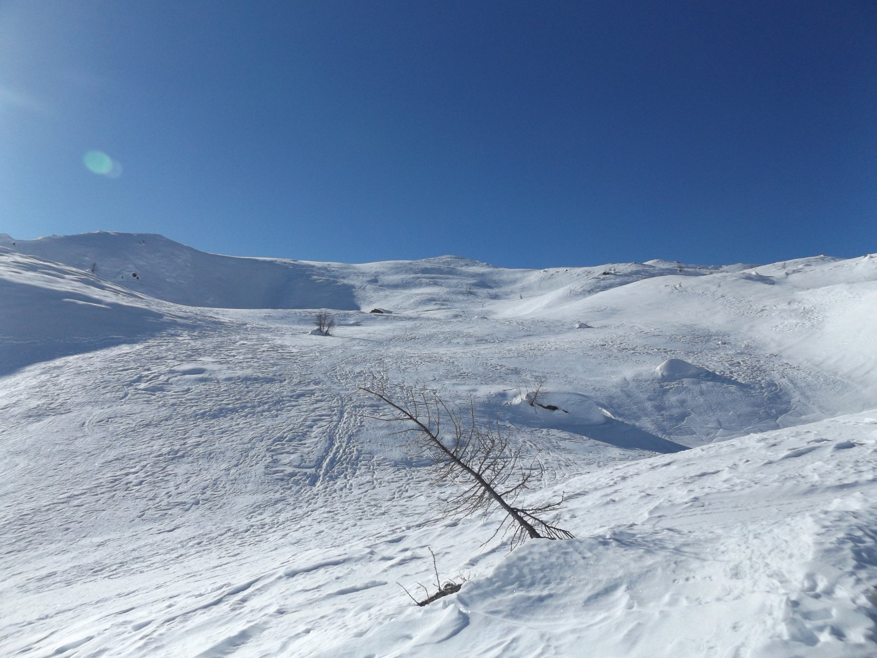 Da qui il percorso rimanente è molto evidente, con la vetta di fronte in direzione sud. Si raggiunge un rudere di alpeggio 2176 m. Oltre si apre il pendio finale, che si può risalire direttamente (moderata pendenza), oppure aggirare a destra raggiungendo un colletto. Da qui pochi metri lungo la comoda dorsale e si è in cima, 2289 m.