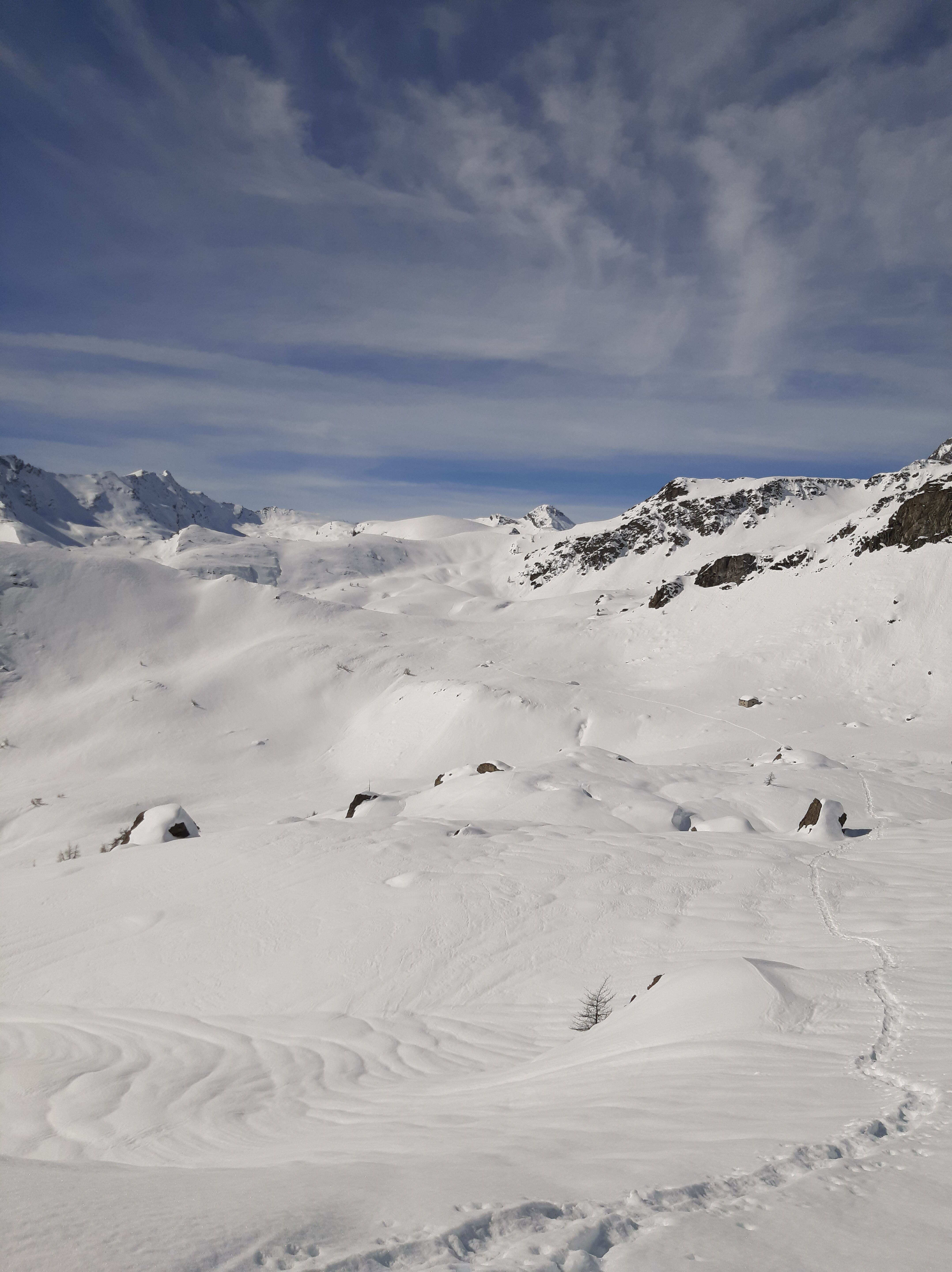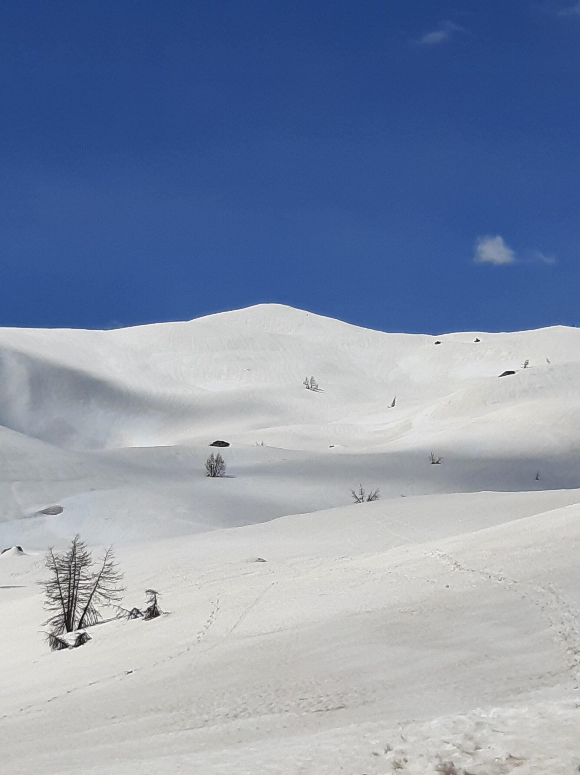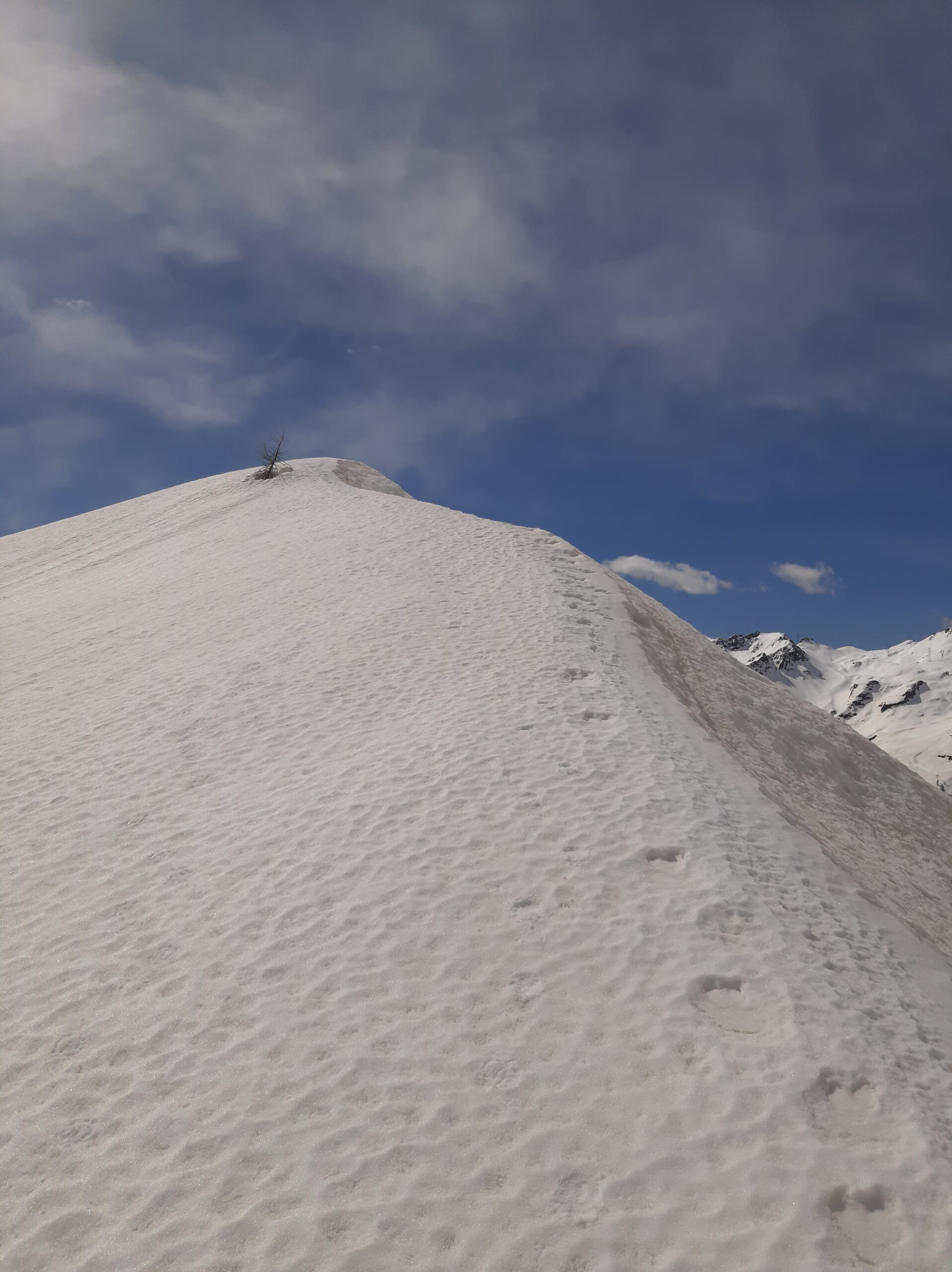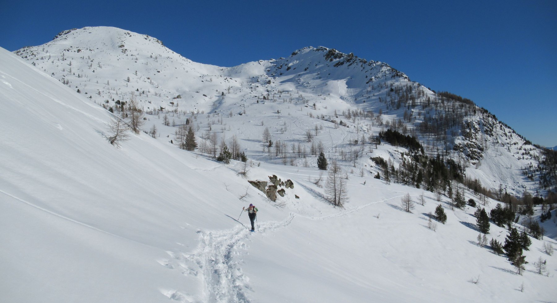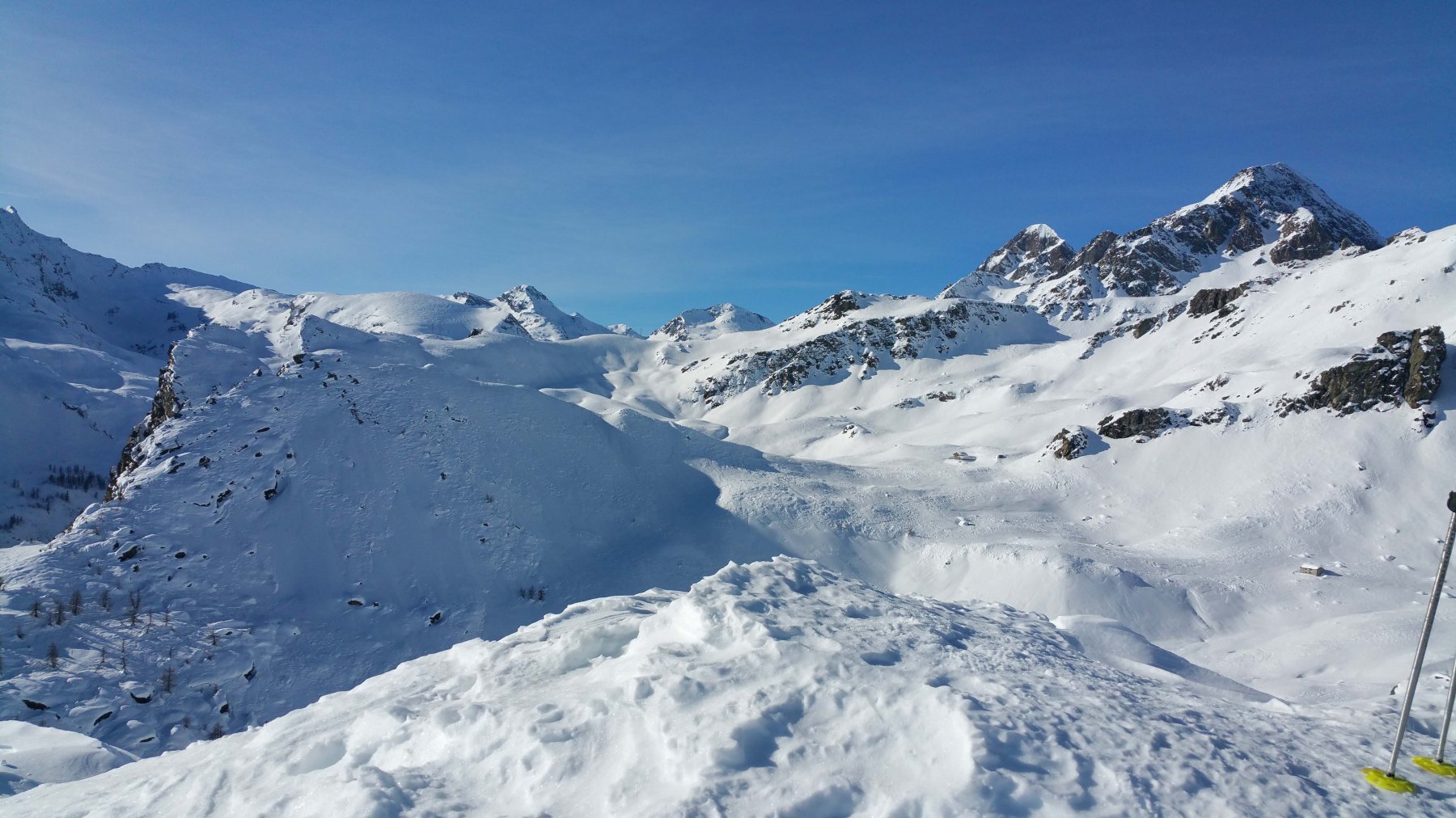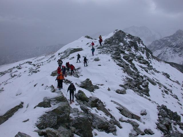 Da qui il percorso rimanente è molto evidente, con la vetta di fronte in direzione sud. Si raggiunge un rudere di alpeggio 2176 m. Oltre si apre il pendio finale, che si può risalire direttamente (moderata pendenza), oppure aggirare a destra raggiungendo un colletto. Da qui pochi metri lungo la comoda dorsale e si è in cima, 2289 m.