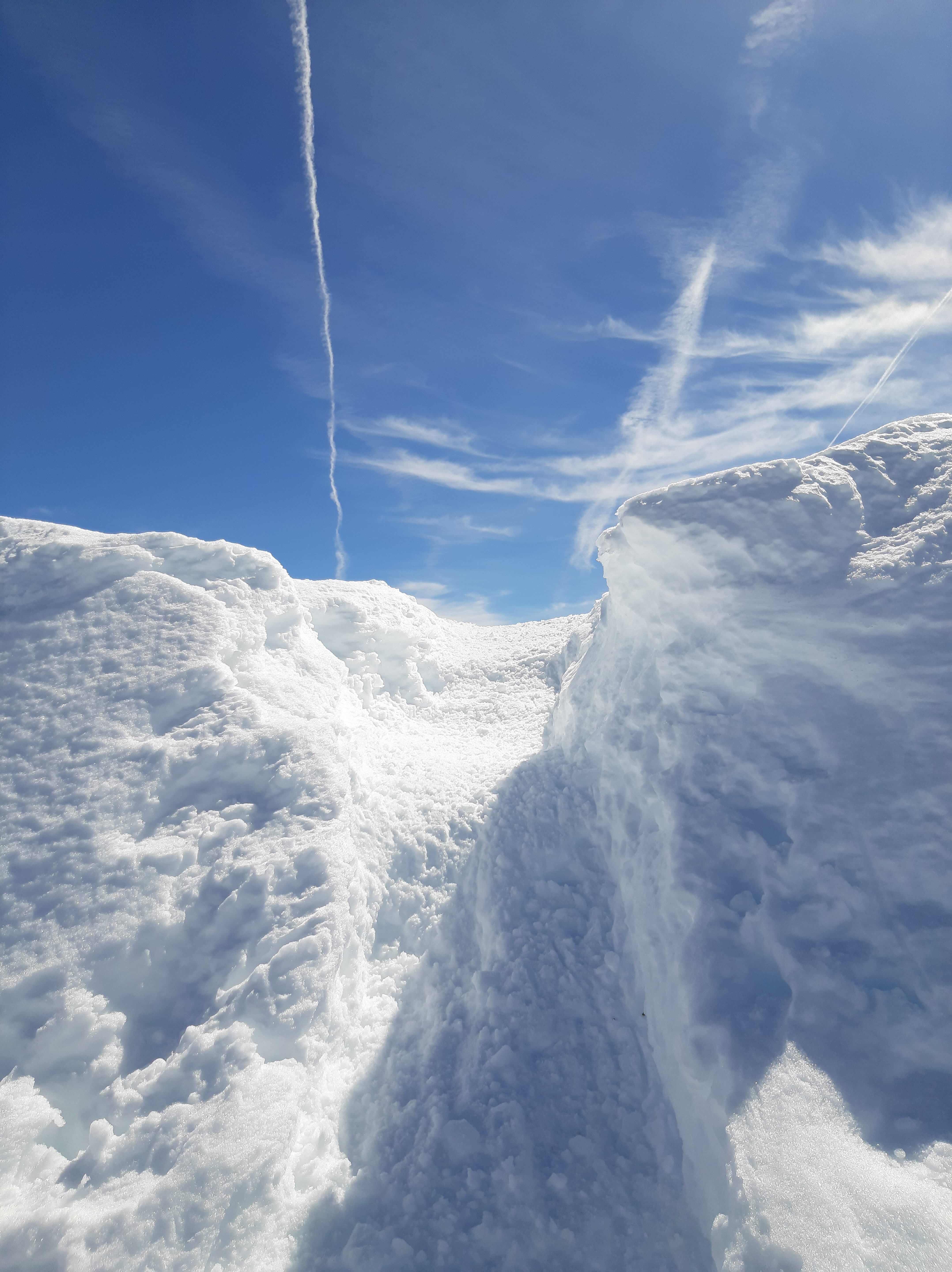 Ciaspole dal park.Salite fino al bivio per il Muffe, poi abbiamo seguito a sx una traccia che porta verso il lago Vernouille e poi al colletto del Ros. Discesa su firn perfetto, tipo velluto. Ci siamo poi tenute alte seguendo la traccia che va al Muffe e poi per pendii intonsi e vellutati siamo salite al col lago Bianco, intercettando la traccia. Discesa via Muffe.