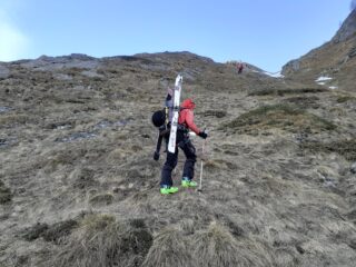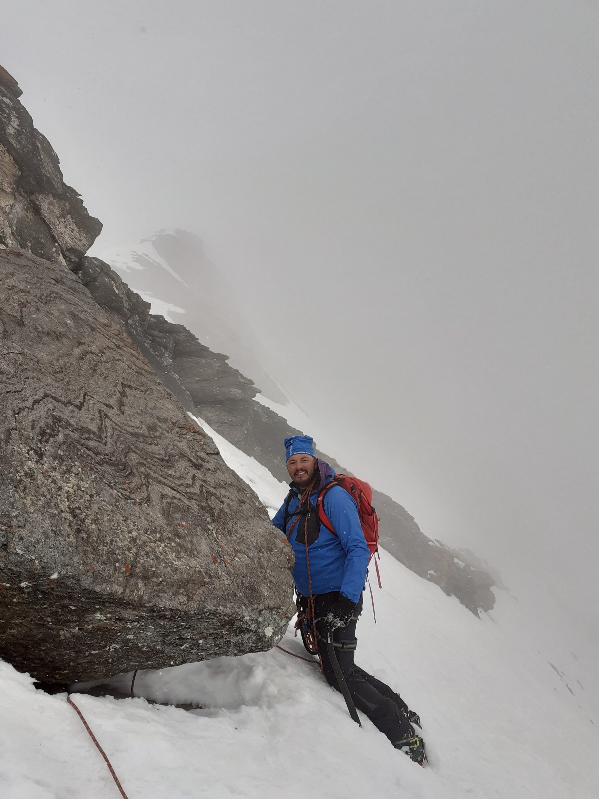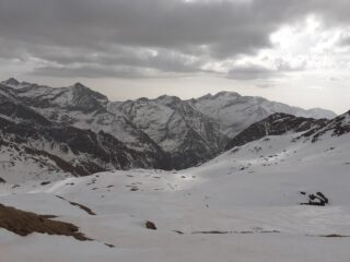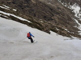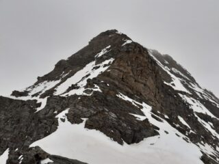 Si parte con gli sci ai piedi praticamente da Piamprato ma poi per seguire il percorso classico e non avventurarsi sui ripidi canali di valanga bisogna portarli sulle spalle per circa 500 metri di dislivello. Da quota 2.100 circa il manto nevoso è continuo e si sale senza problemi fino a quota 2.900 dove la pendenza si fa sempre più sostenuta e per progredire in sicurezza è meglio avere i rampant. Da quota 3.000 fino al colletto a quota 3.048 dove si conclude lo scialpinismo e inizia l’alpinismo sono consigliati i ramponi. La salita alla vetta è ben più impegnativa di quanto relazionato su questo sito anche se noi l’abbiamo affrontata sotto una nevicata via via più fitta e con visibilità non ottimale. Nelle condizioni attuali si procede su misto abbastanza insidioso con piccozza e ramponi e in alcuni tratti occorre arrampicare. Scarse le possibilità di assicurarsi. Il passaggio definito di II grado noi lo abbiamo valutato superiore. Alla quota altimetrica di 3.118, quando mancavano meno di 50 metri dalla croce che vedevamo tra la nebbia e con meno di metà cresta ancora da percorrere, abbiamo deciso di tornare indietro. Considerata la nostra lentezza nella progressione e la nevicata in corso abbiamo adottato la scelta della prudenza e, con molta cautela, siamo tornati al colletto dove avevamo lasciato gli sci. Discesa con neve di ogni tipo e prevalenza di crosta da rigelo. Visibilità migliorata da quota 3.000 in giù e qualche tratto divertente su neve trasformata soprattutto sotto i 2.200 metri. Per canalini e lingue di neve sempre molto esili si torna ancora al parcheggio di Piamprato con gli s i ai piedi. Con Matteo e Luca.