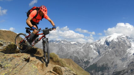 Stupendo balcone sui ghiacciai del Gruppo Oltres – Stelvio adatto a buoni Ciclisti molto allenati e ad EBIKE fino a quota 2900m circa compreso il rientro dal Nr. 20 aperto solo dopo le ore 16 per non intralciare i pedoni. Per la cima, a piedi occorrono buone doti escursionistiche EE, o solo per Biker espertissimi.