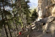 Una decina di metri prima una scaletta supera il muro a monte della strada e conduce agli altri tre settori dove si trovano gran parte delle vie.