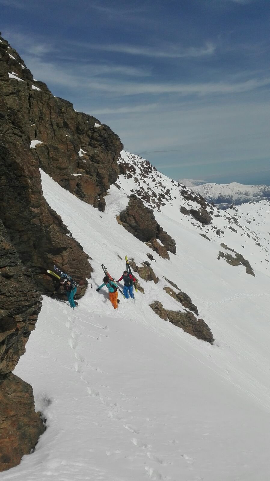 Da Alpe bianca (ecomostro) salire verso il Ciriunda dal canale sud. Nella parte alta invece di uscire in cresta si segue a sx un valloncello secondario (l’unico che si incontra). Si esce su facilissimo terreno che precede il Lago di Viana e il Colle dei Tre Lajet. Proseguire per il Lago Pané e oltre risalendo le balze fino a arrivare alla quota 2421 (evidente cucuzzolo). Di qui scendere per circa 150-200m nel pianoro a sud del Torrione Mazzucchini e ripellare andando a raggiungere la cresta sud del medesimo torrione. Proseguire con un taglio verso sud-ovest (paline sentiero estivo se si vedono) in direzione Ciorneva/Cima La Rossa perdendo un po’ di quota e spostandosi con un lungo traverso fino a raggiungere il vallone sottostante la Ciorneva per risalirlo fino a svoltare a dx per imboccare il canalone ripido sotto la cima. Ometto in vetta. Scendere fino al Lago Grande poi ripellare al Ciarm del Prete e così scendere a Alpe Bianca per chiudere l’anello. Giro lungo di grande ambiente che percorre valloni immensi sormontati da maestose cattedrali rocciose. Numerose varianti possibili per allungarlo o eventualmente accorciarlo.