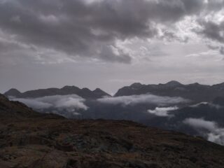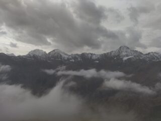 Partenza dalle grange con pioggerella e poche pretese, raggiunto l’alpeggio a circa 2300 nella nebbia e ripiegato verso il sentiero che in falsopiano porta verso Pian Ciamarella. Verso le 13 la visibilità è migliorata molto per cui abbiam risalito la lunga e regolare dorsale che si affaccia su Pian Ciamarella con begli scorci sulle Lance e sul Ghicet. Pendenza sempre sostenuta e regolare poi l’ultimo tratto molla ma il terreno diventa più irregolare tra pietraia instabile e roccette. Raggiunta una quota con grosso ometto (direi sui 2800) tra il Ghicet e la Punta Rossa a destra. Discesa tra l’andirivieni della nebbia ma tenendo il filo della dorsale si ha un buon orientamento, rientro per Pian Ciamarella e rifugio Ciriè. Meteo dignitoso e meglio di quanto temuto, quota neve ben oltre 3000. Salut