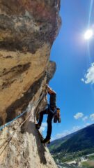 Via storica sul Paretone Oggioni, ormai divenuta una classica. Forse più gettonata per la nomea di via difficile più che per la bellezza generale dell’itinerario: purtroppo la qualità della roccia a tratti non è il massimo (soprattutto sul primo tiro) lo stile è molto fisico, si salvano il 6 tiro sul bellissimo diedro di 6b, ed il 7 tiro in uscita di 55m con possibilità di integrare friend 1 e 2 BD.