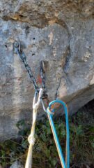 Le famose calate di rientro delle placche alte si trovano con un po di pazienza, seguendo i bolli rossi ed andando sempre verso SINISTRA. Così facendo diventa un bel viaggio alpinistico a tutti gli effetti.