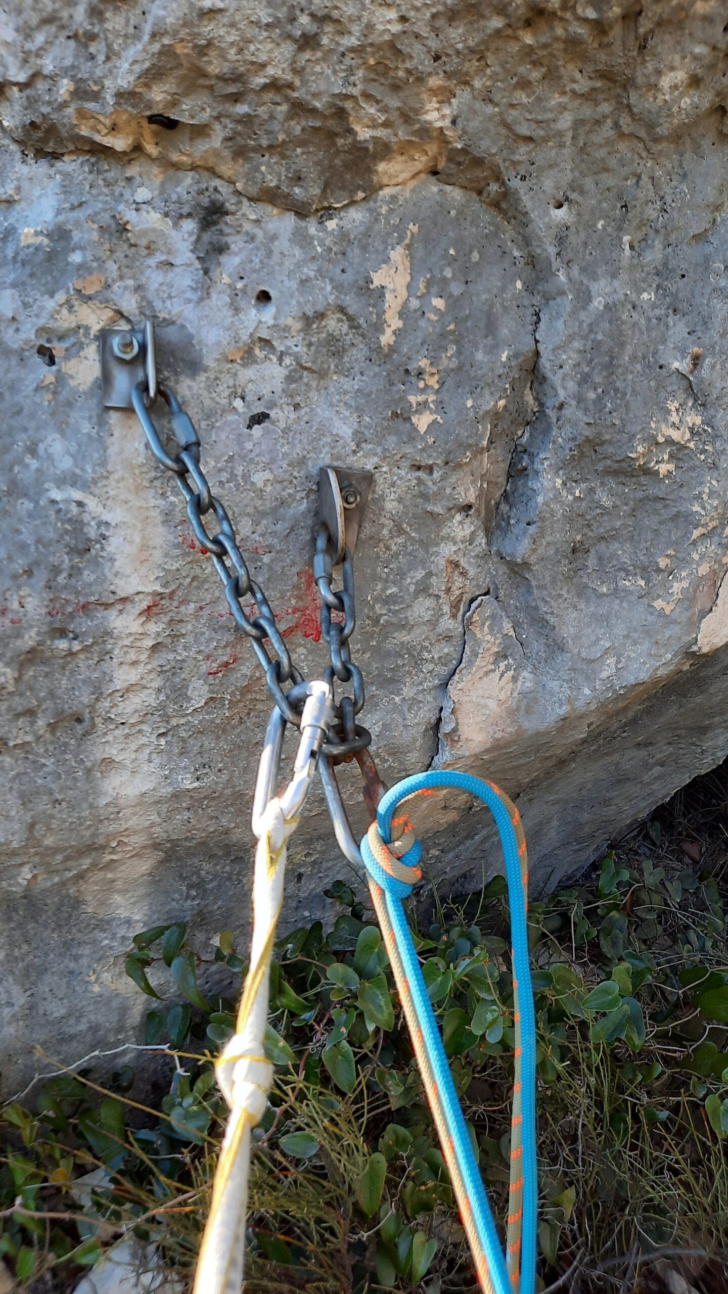Inutili i friend sul 6 tiro. Soste tutte in buono stato ed alcune nuove di pacca, sui tiri finali con anelli di calata. Necessari cordini e moschettoni per allestire.