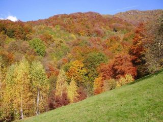 Ora il tragitto si fa pianeggiante attraverso un bel bosco di faggi secolari, si supera il bivio che conduce alla miniera