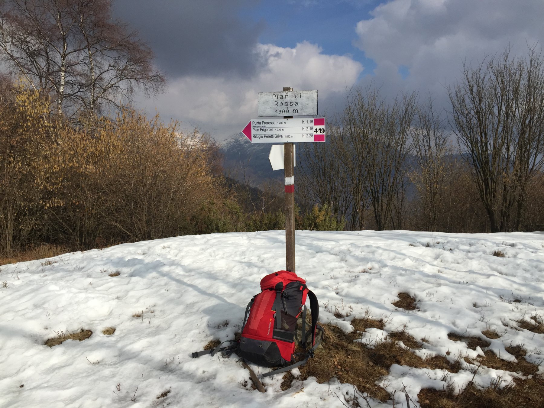 Oltre il Pilone il sentiero – sempre ottimo – porta prima ad un punto panoramico verso le valli di Lanzo e poi al Pian di Rossa 1308 prima elevazione della creasta che porta all’angiolino