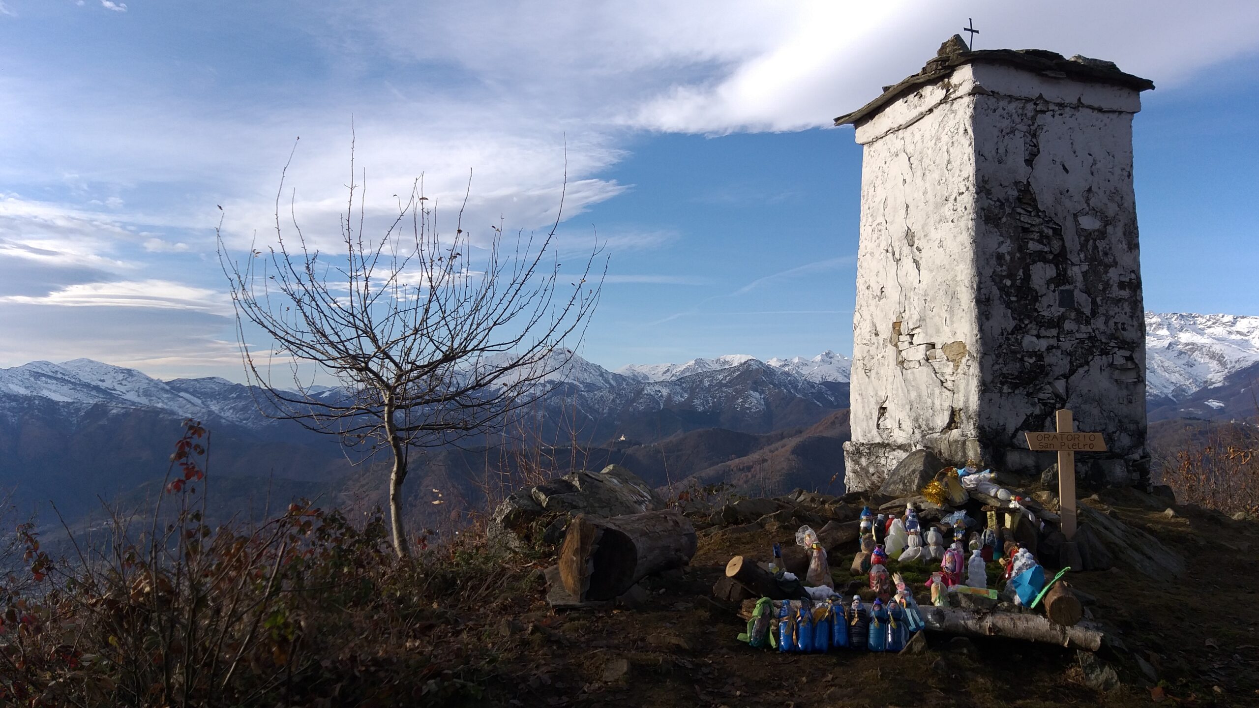 Proseguire a sinistra costeggiando le case sino a raggiungere la carrareccia che conduce a Olla superiore, risalire la strada asfaltata e dopo pochi metri proseguire diritto su una strada sterrata, al primo bivio (cartelli indicatori) voltare a destra